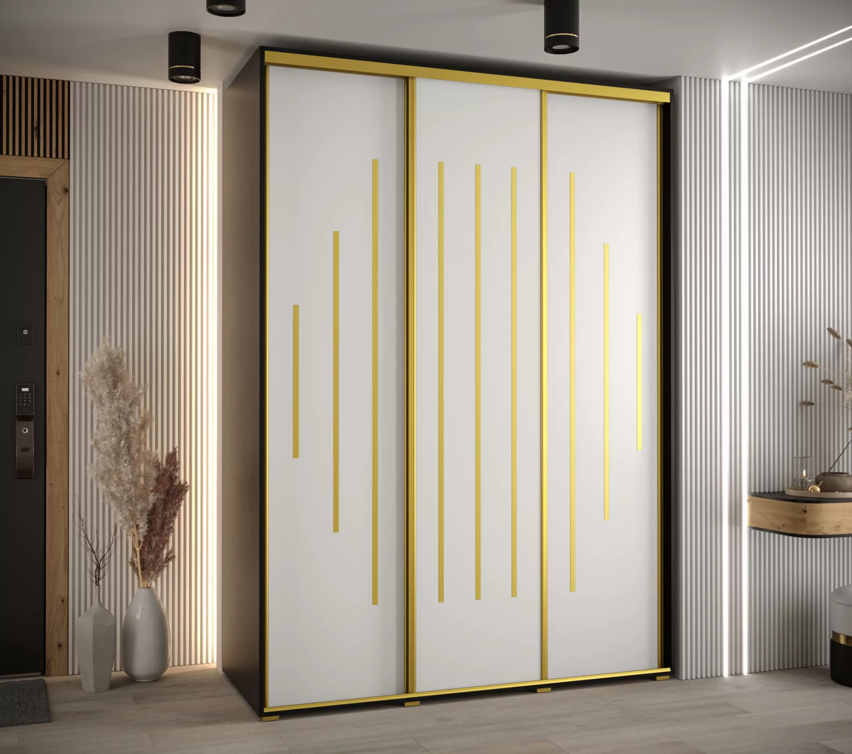 Šatní skříň YVONA 12 - 170/60 cm, černá / bílá / zlatá