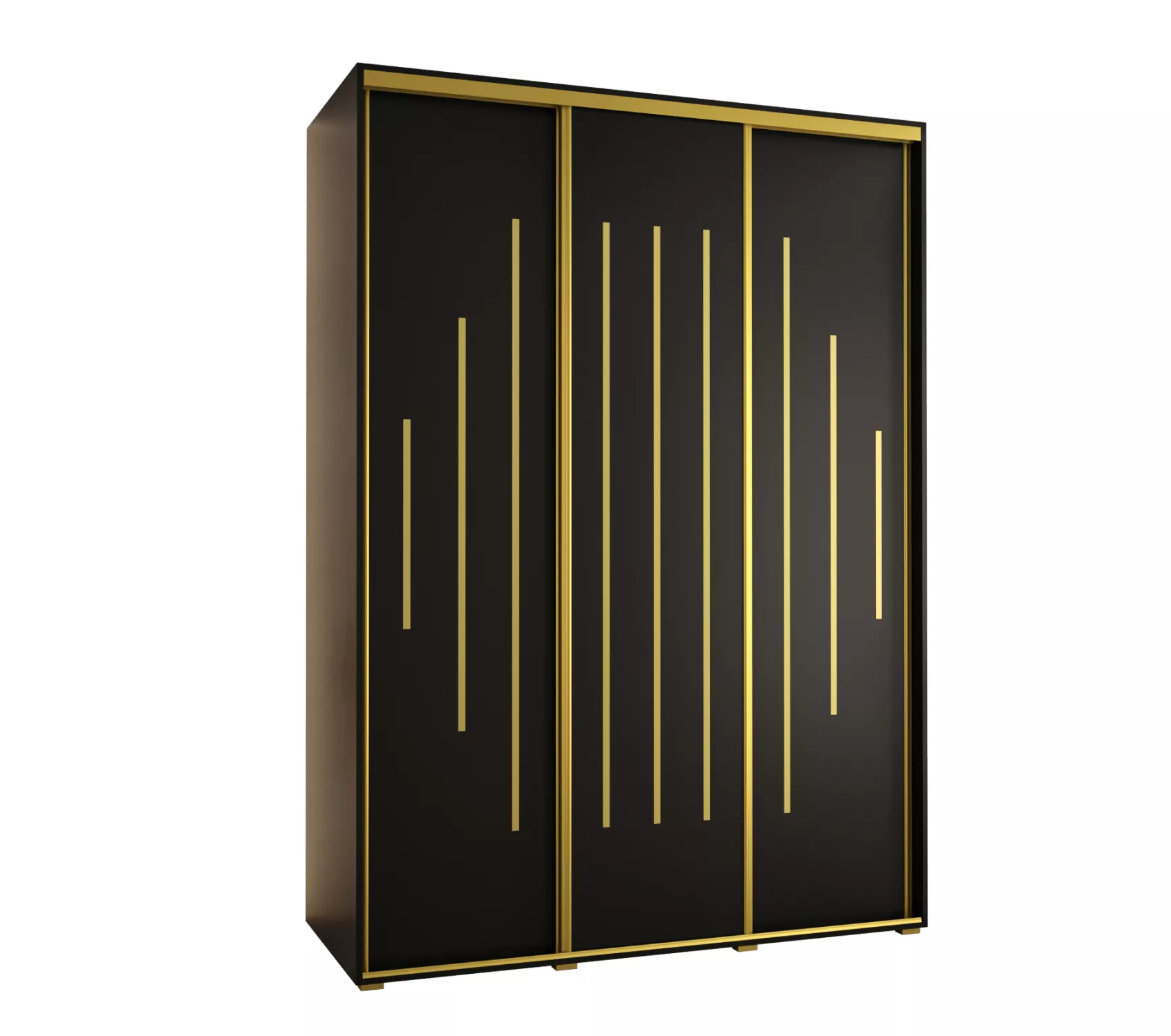Šatní skříň YVONA 12 - 170/60 cm, černá / zlatá