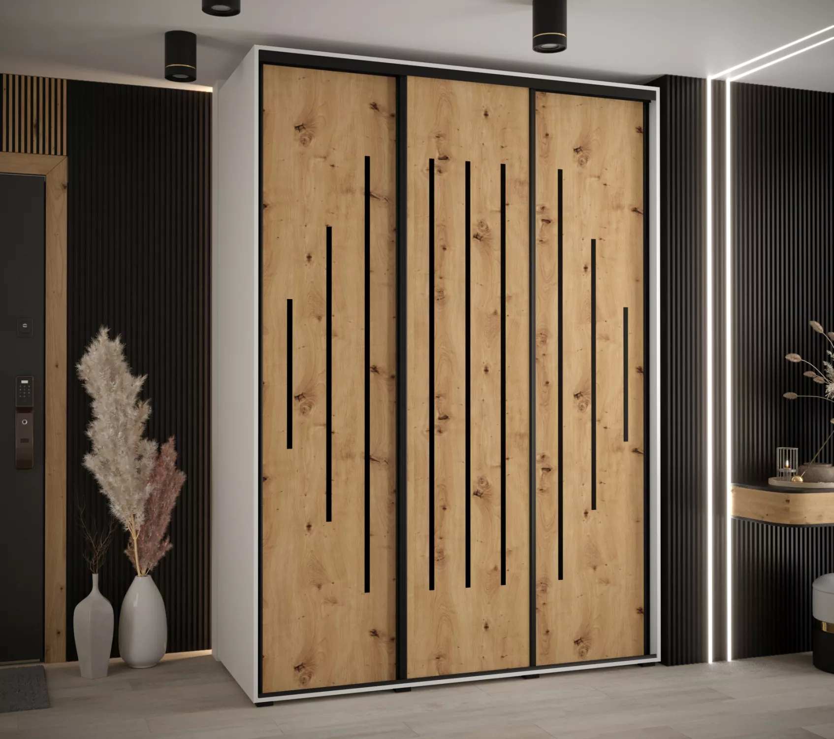 Šatní skříň YVONA 12 - 180/60 cm, bílá / dub artisan / černá