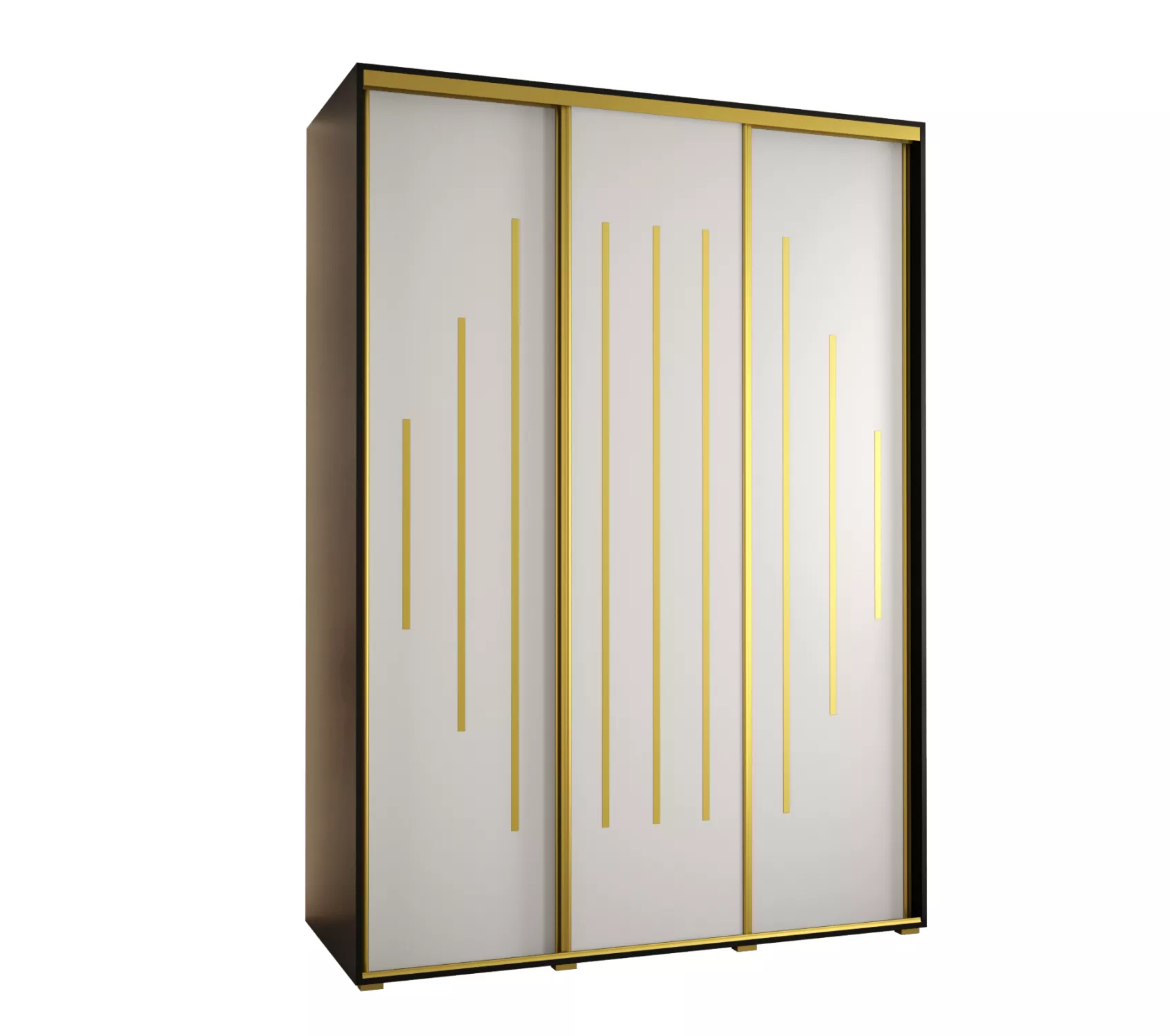 Šatní skříň YVONA 12 - 180/60 cm, černá / bílá / zlatá