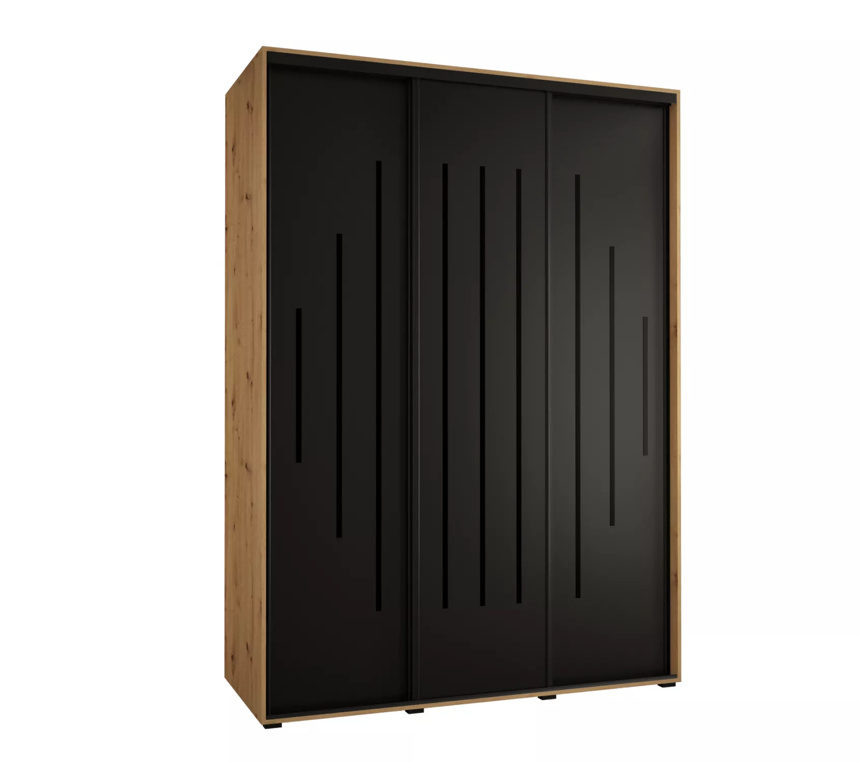 Šatní skříň YVONA 12 - 180/60 cm, dub artisan / černá / černá