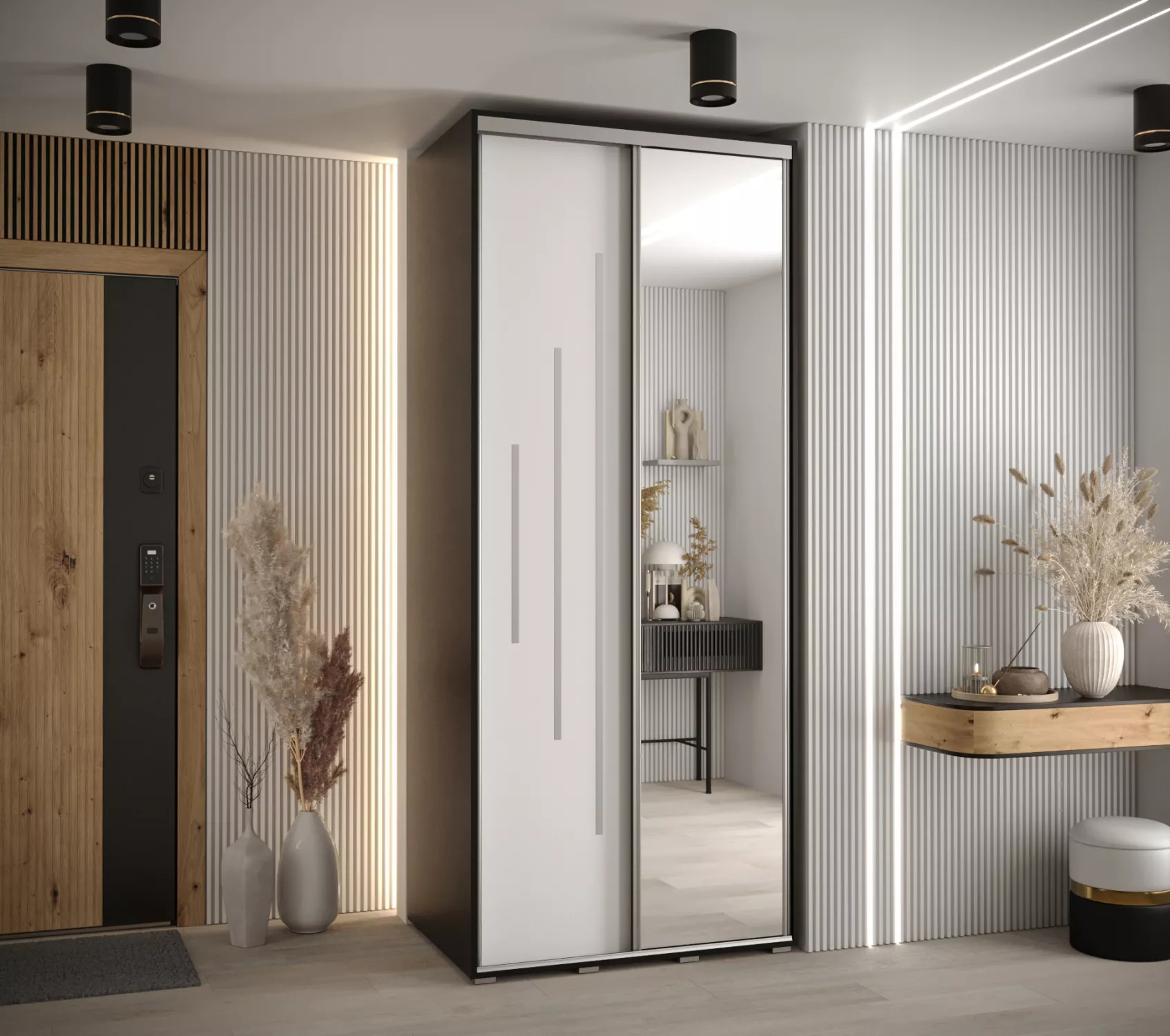 Šatní skříň YVONA 13 - 100/60 cm, černá / bílá / stříbrná