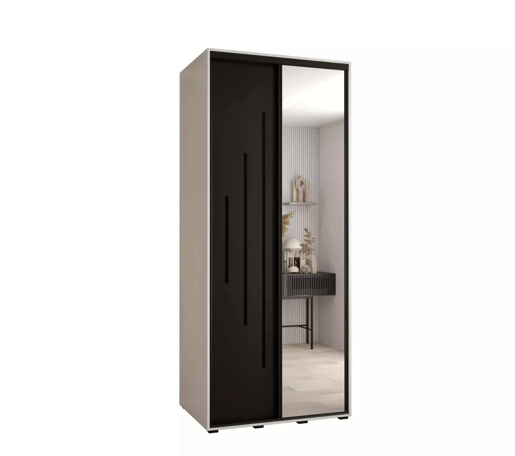 Šatní skříň YVONA 13 - 110/60 cm, bílá / černá / černá