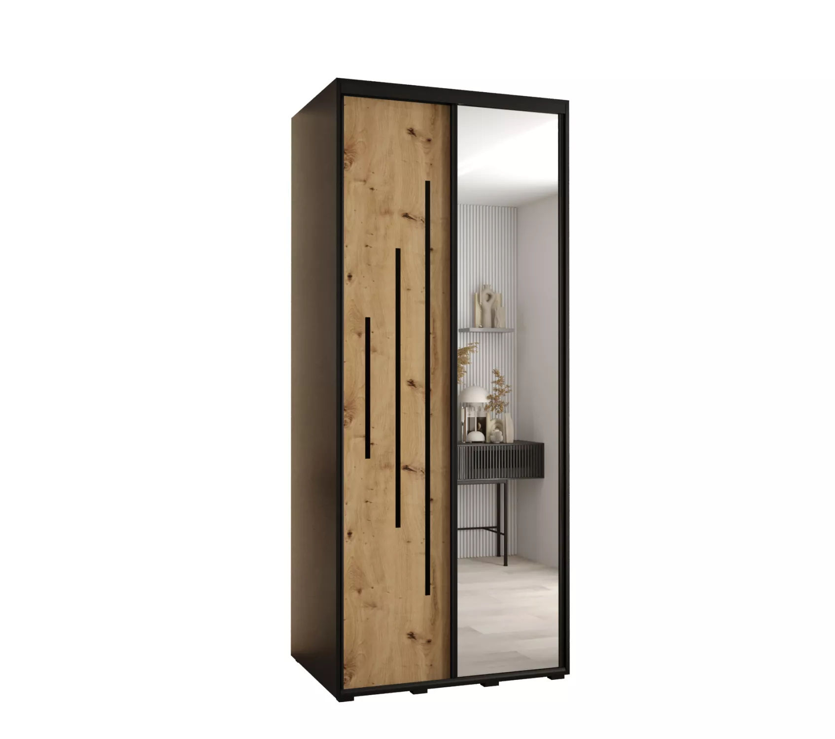 Šatní skříň YVONA 13 - 120/60 cm, černá / dub artisan / černá