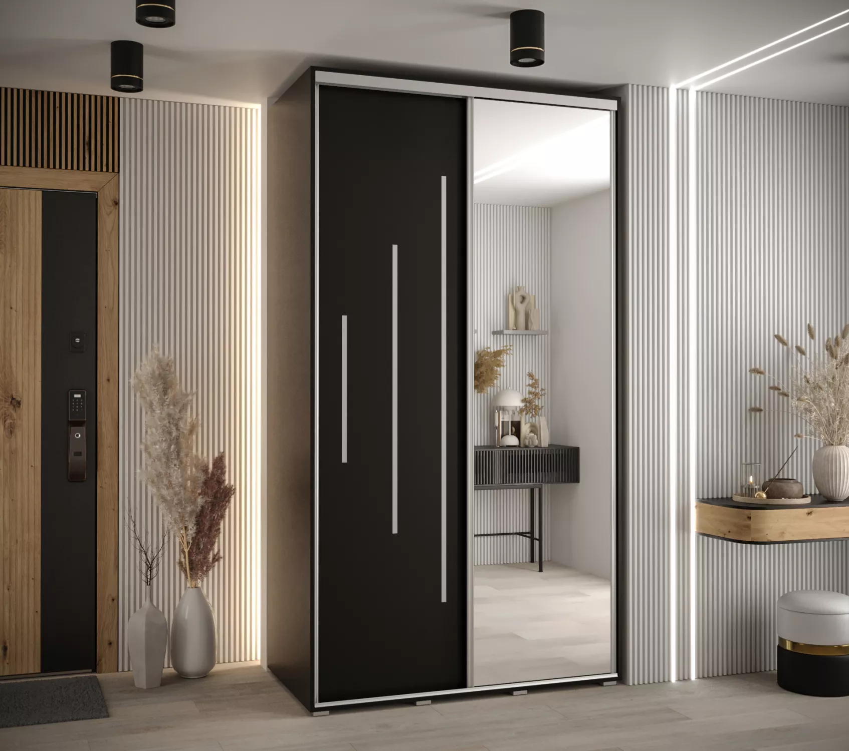 Šatní skříň YVONA 13 - 130/60 cm, černá / stříbrná