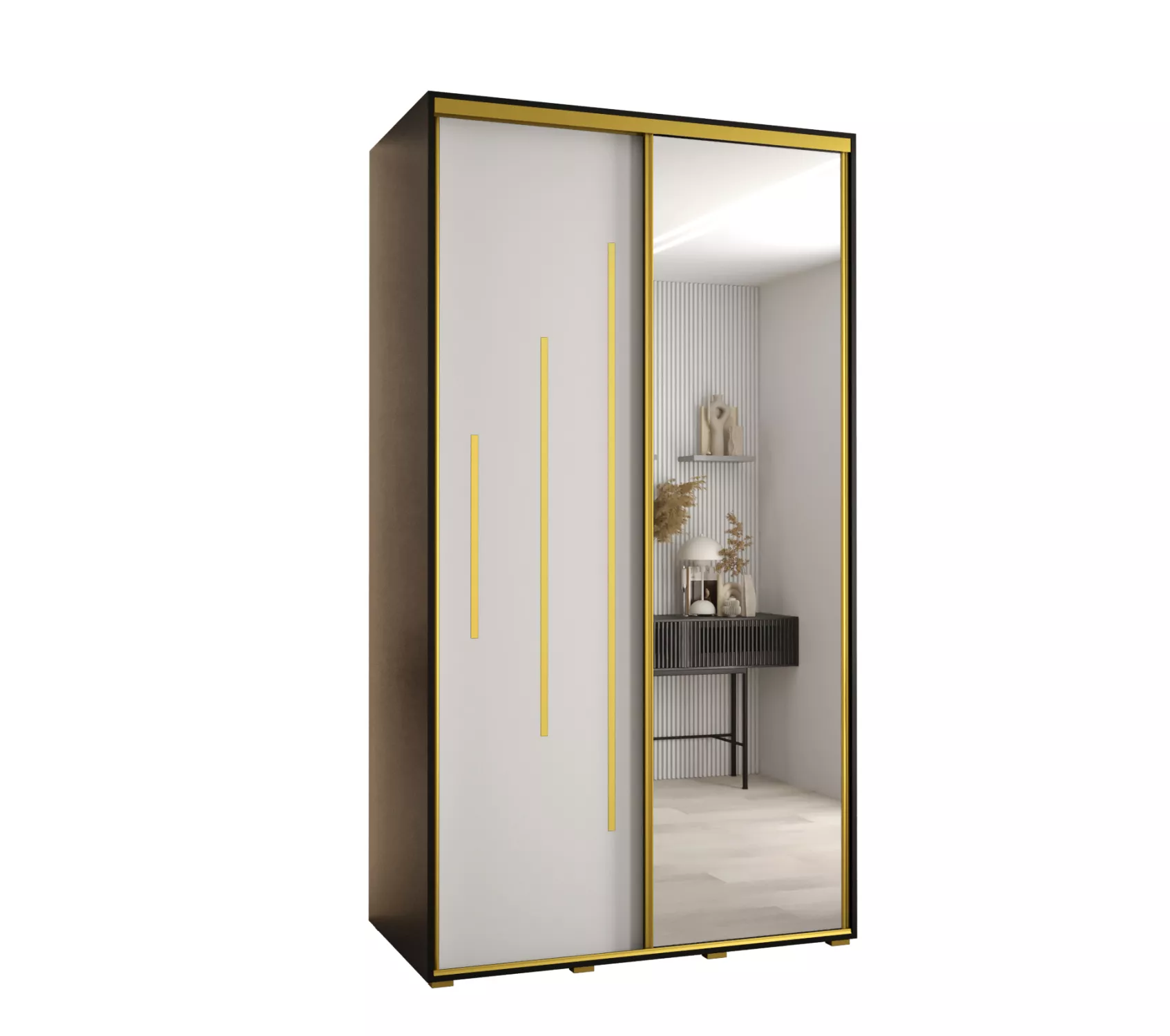 Šatní skříň YVONA 13 - 140/60 cm, černá / bílá / zlatá