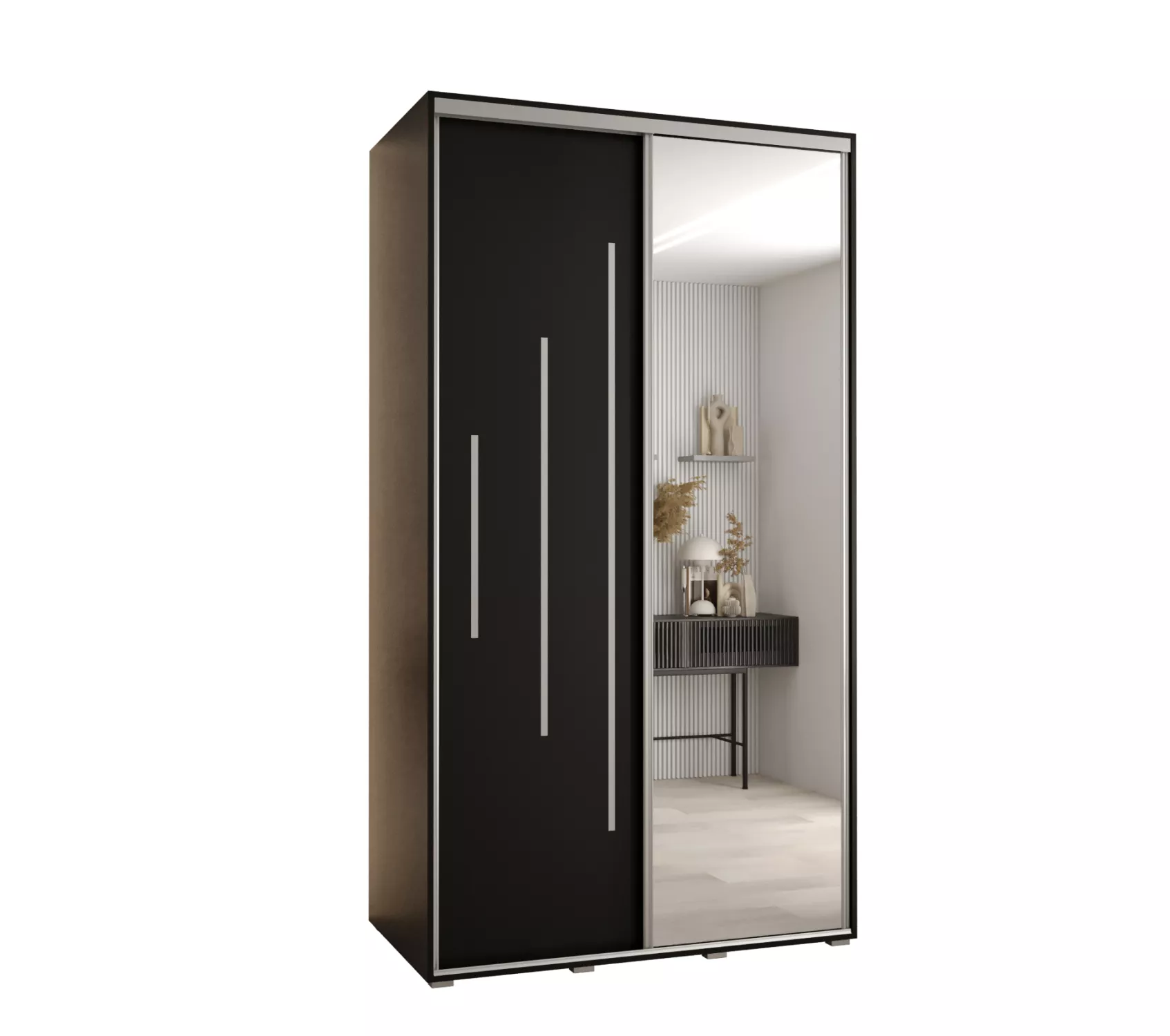Šatní skříň YVONA 13 - 140/60 cm, černá / stříbrná