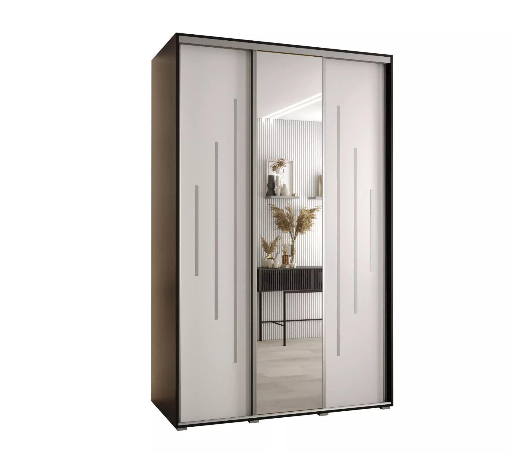 Šatní skříň YVONA 13 - 160/60 cm, černá / bílá / stříbrná