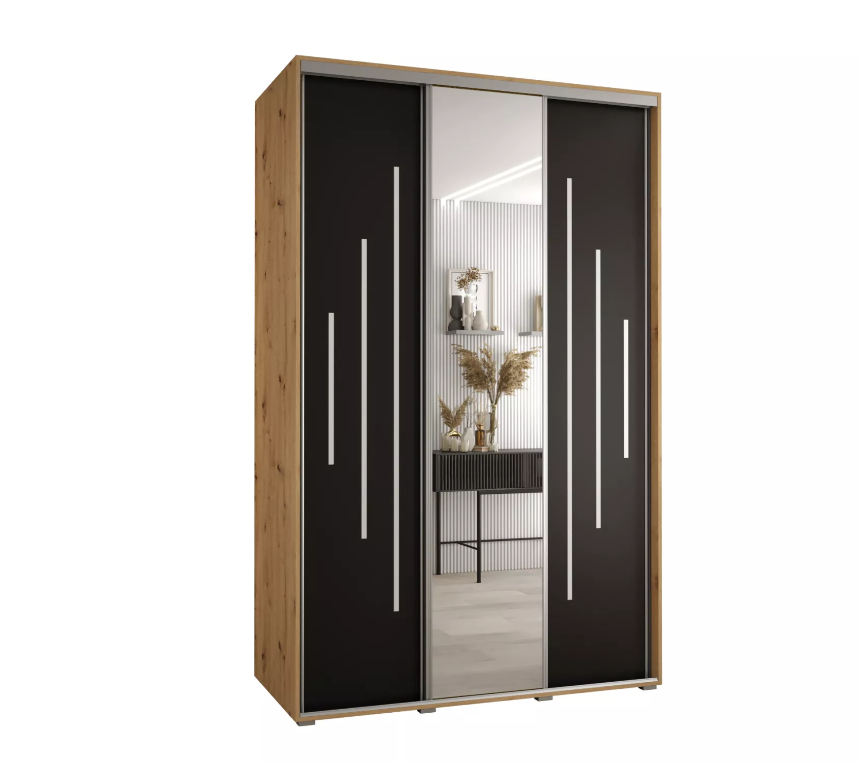 Šatní skříň YVONA 13 - 160/60 cm, dub artisan / černá / stříbrná
