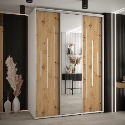 Šatní skříň YVONA 13 - 170/60 cm, bílá / dub artisan / stříbrná