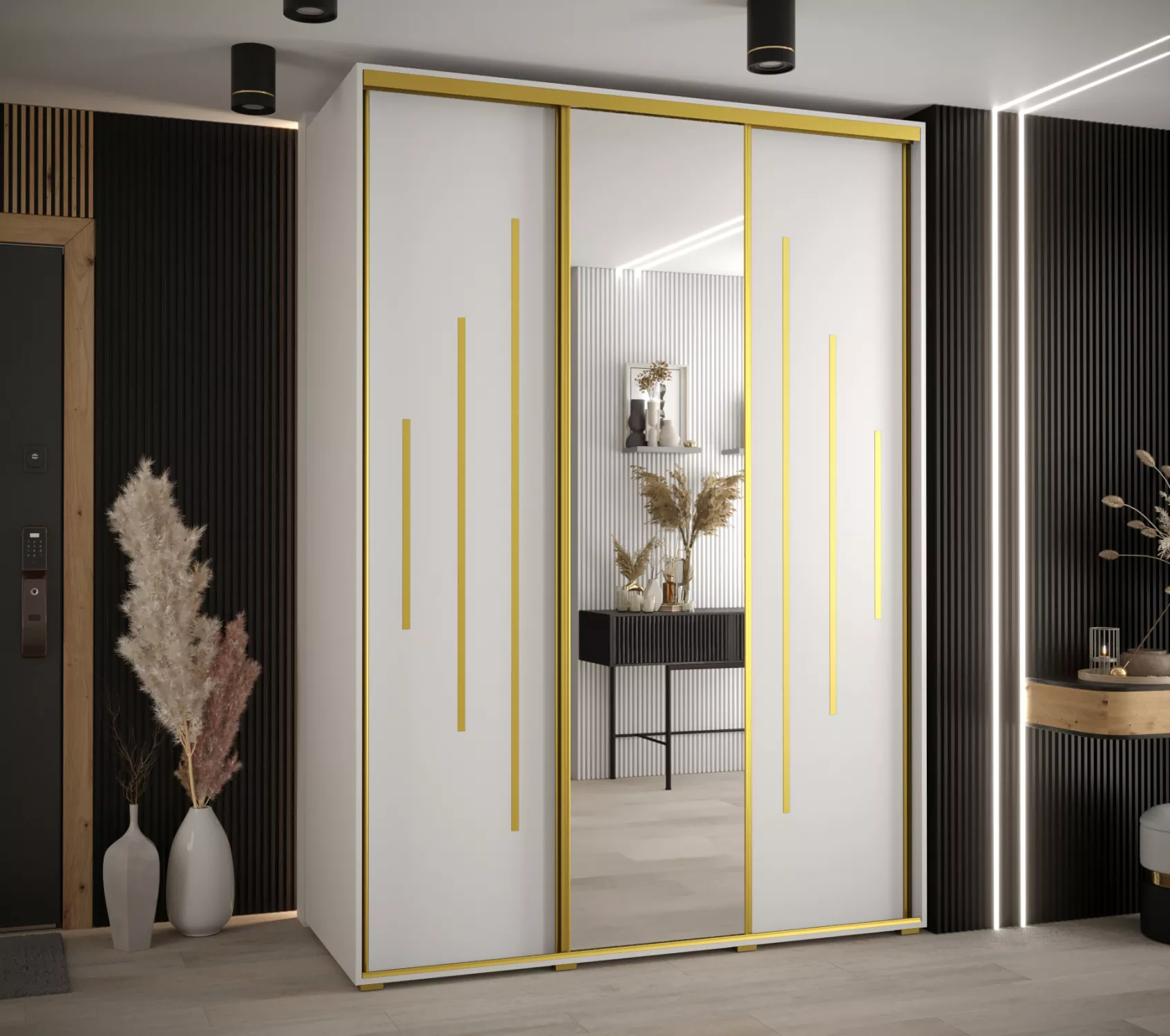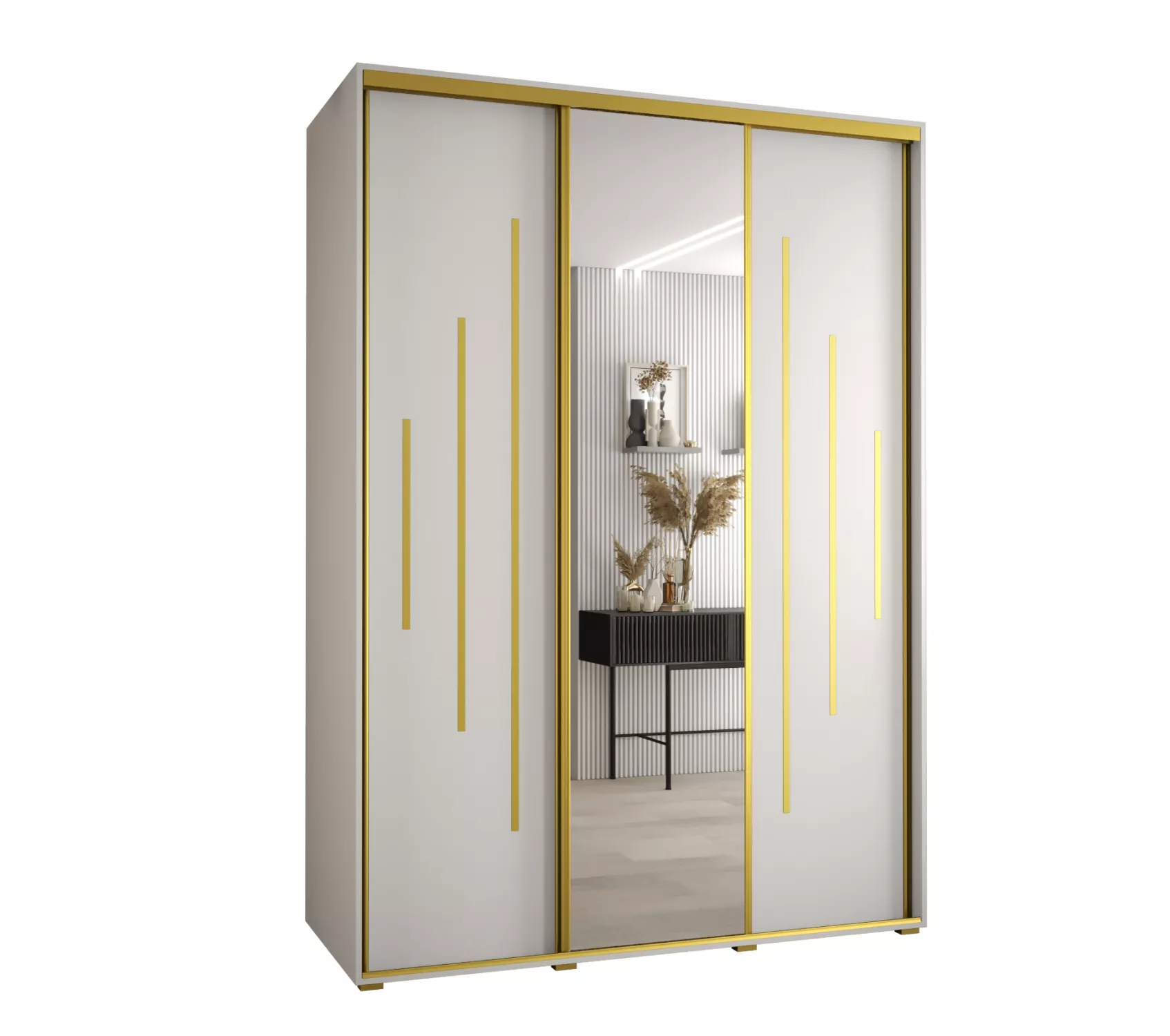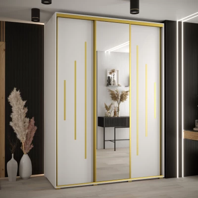Šatní skříň YVONA 13 - 170/60 cm, bílá / zlatá