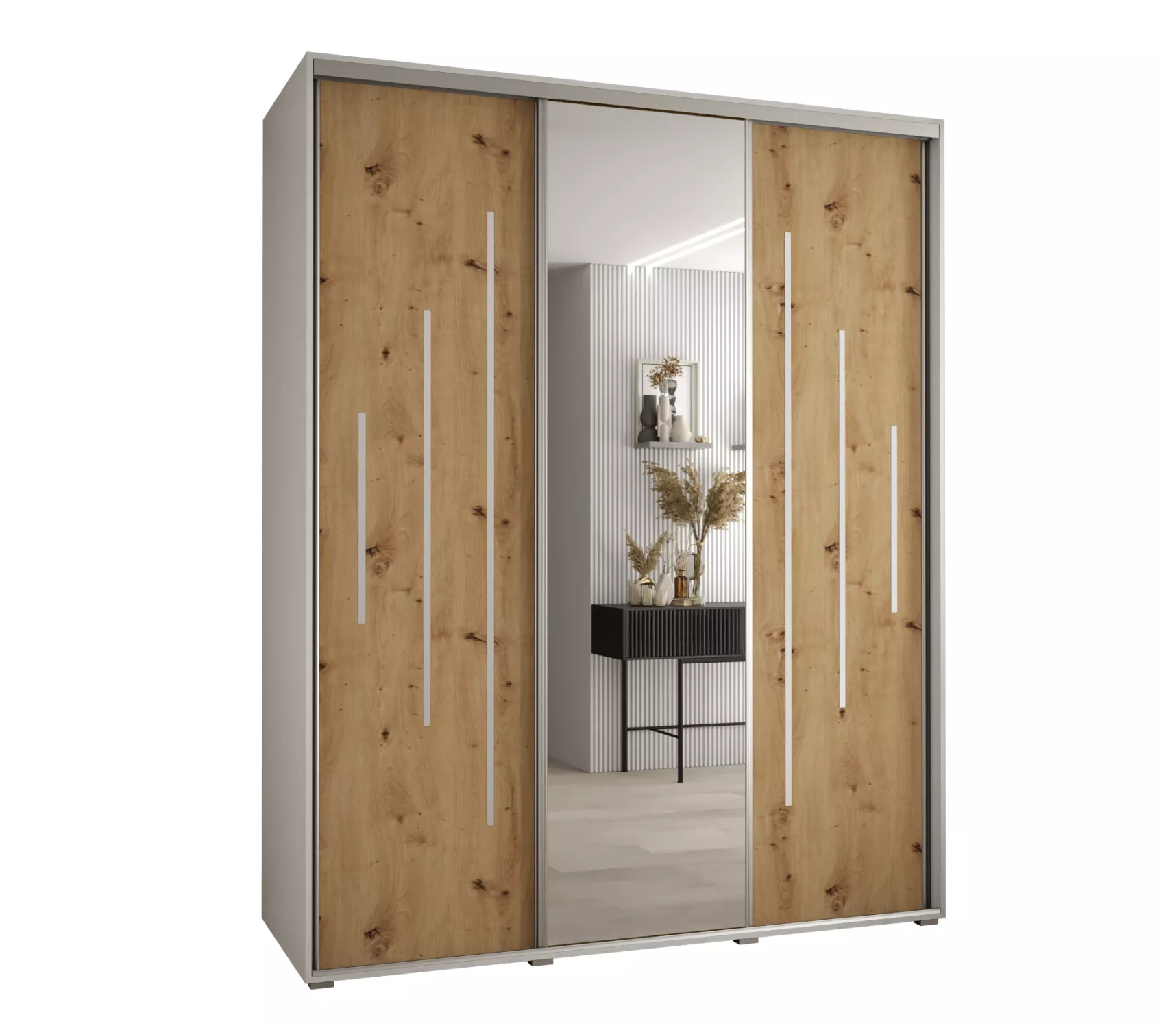 Šatní skříň YVONA 13 - 190/60 cm, bílá / dub artisan / stříbrná