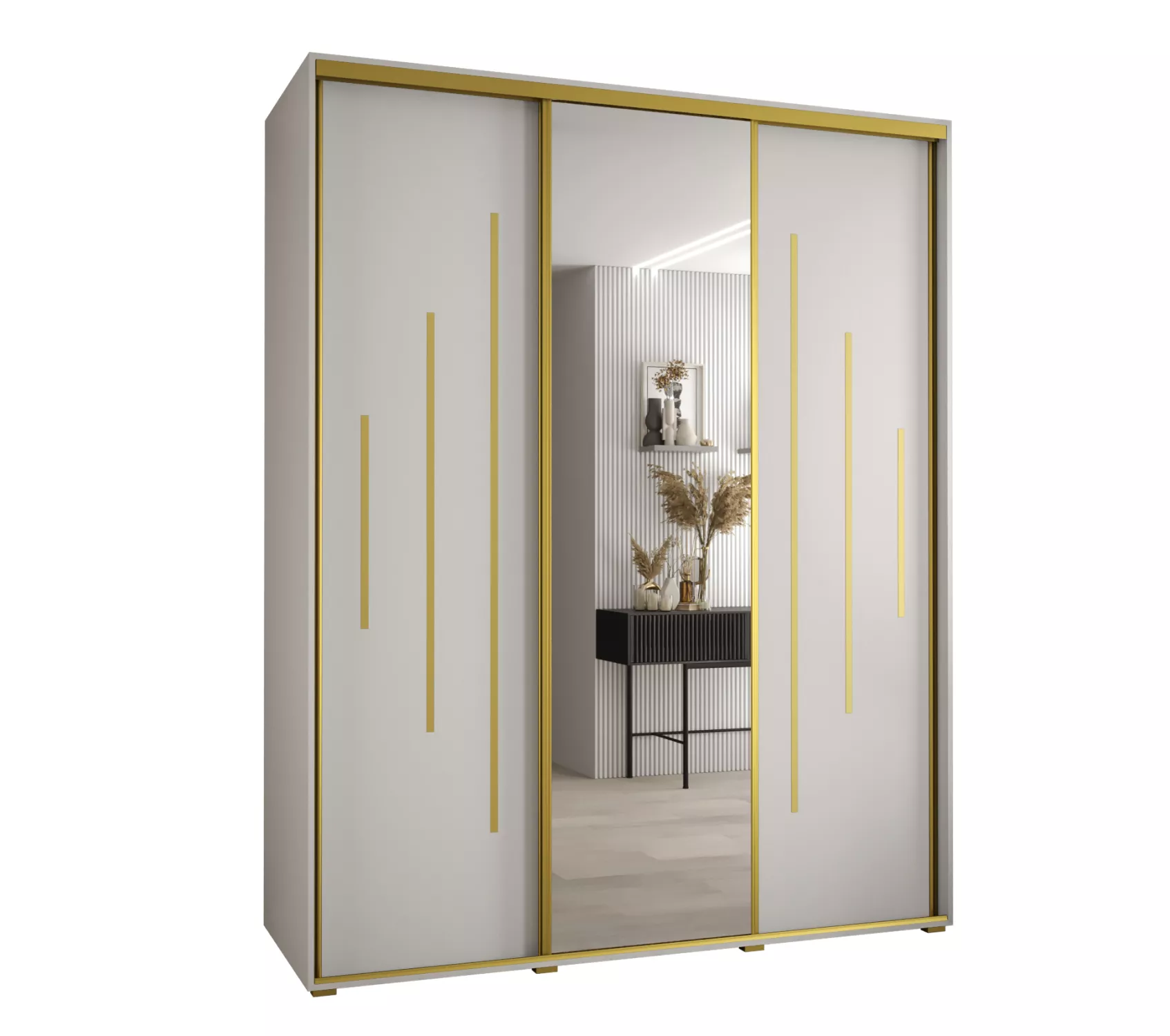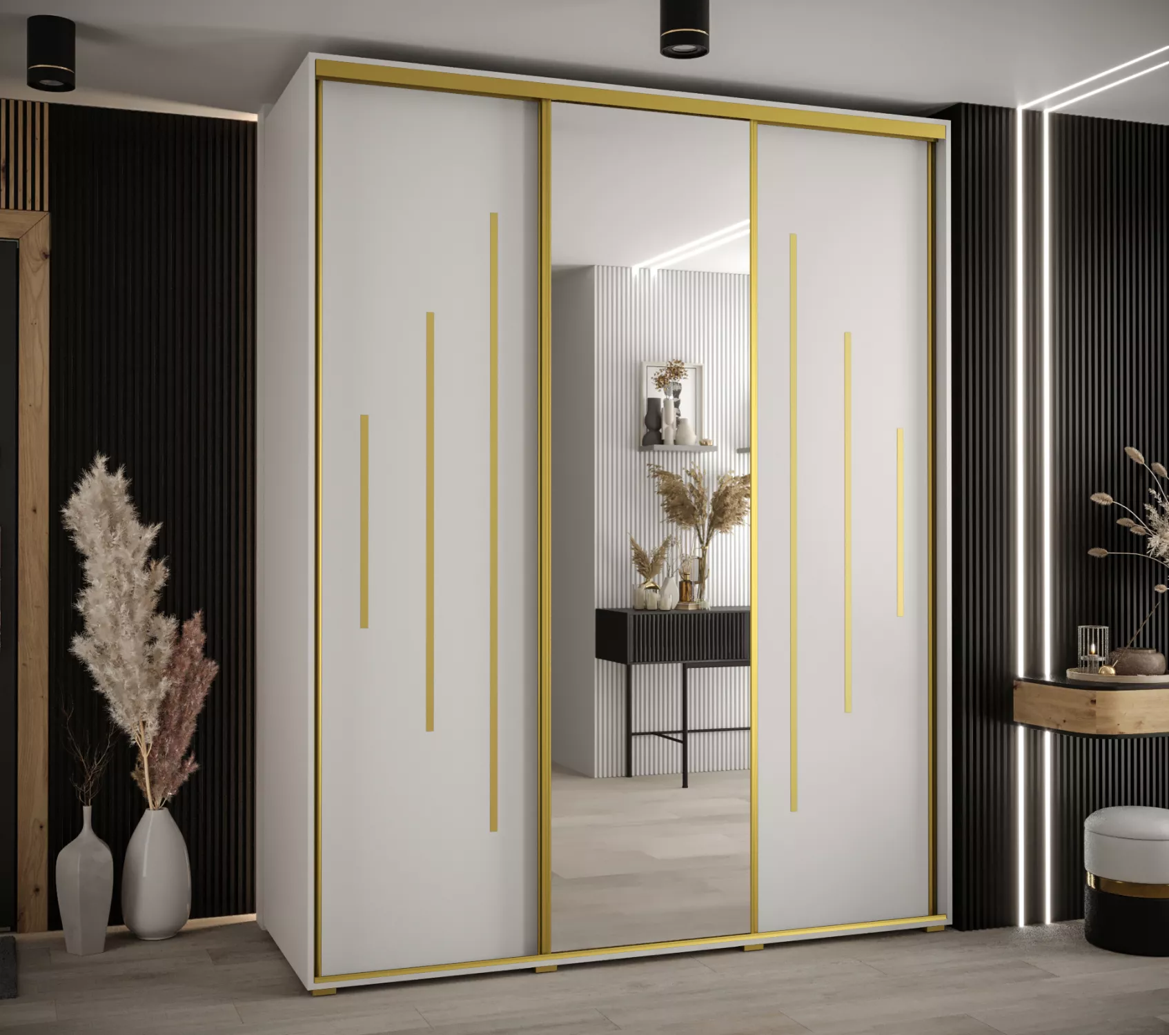 Šatní skříň YVONA 13 - 190/60 cm, bílá / zlatá