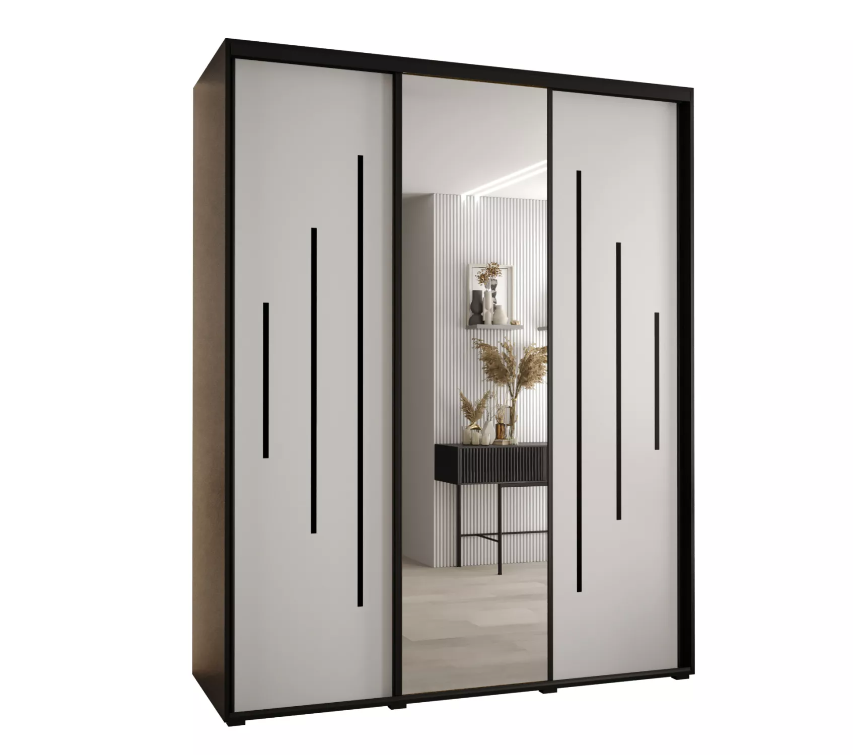 Šatní skříň YVONA 13 - 190/60 cm, černá / bílá / černá