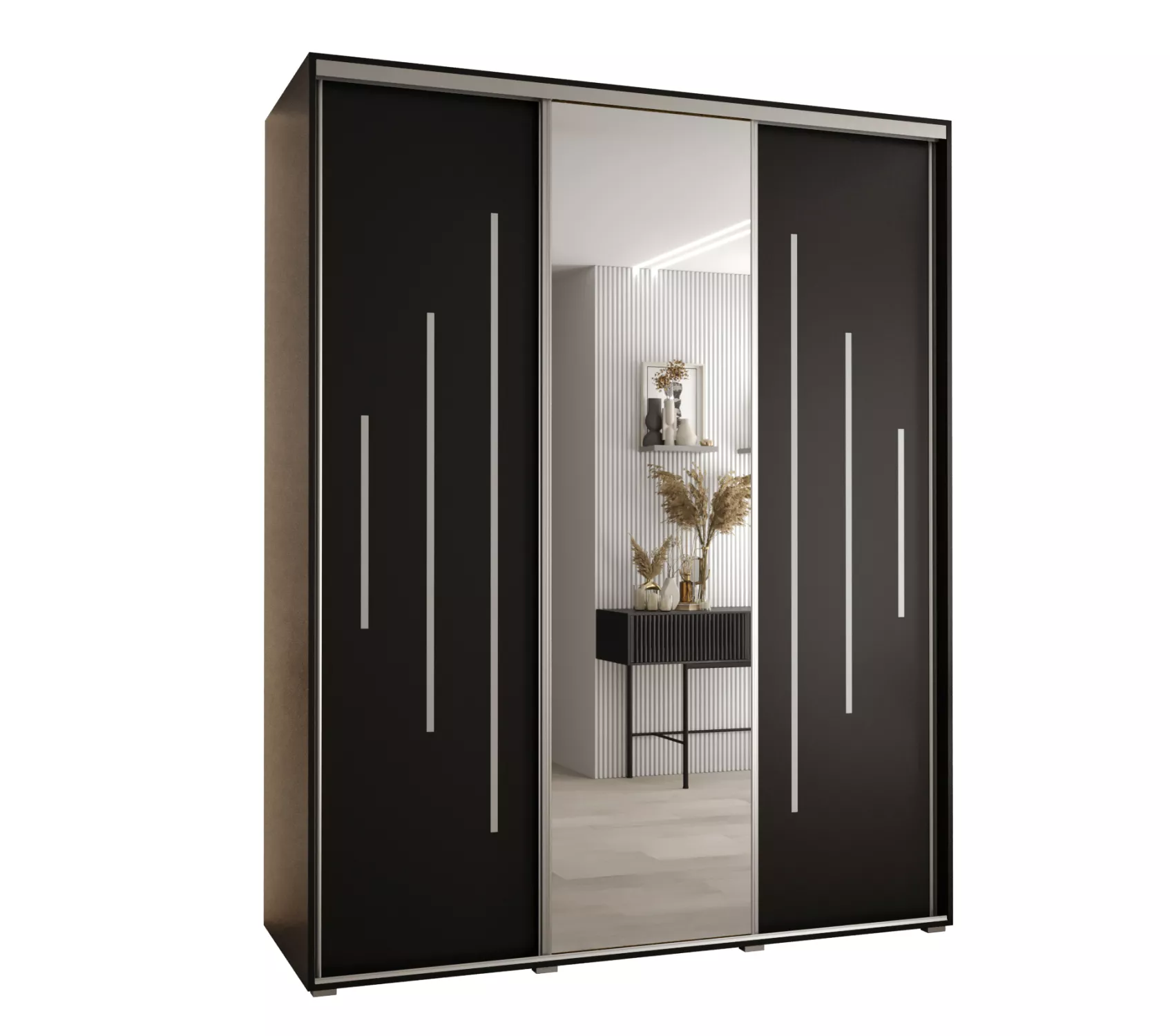 Šatní skříň YVONA 13 - 190/60 cm, černá / stříbrná