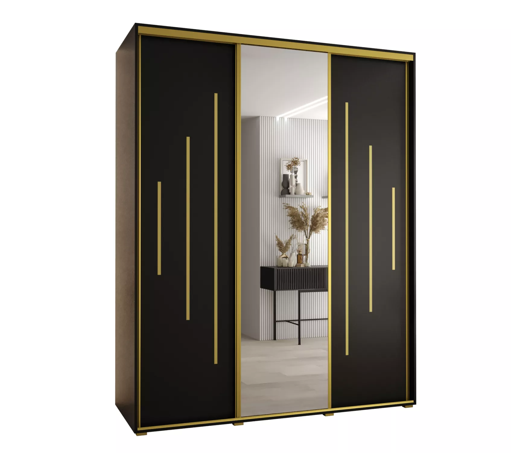 Šatní skříň YVONA 13 - 190/60 cm, černá / zlatá