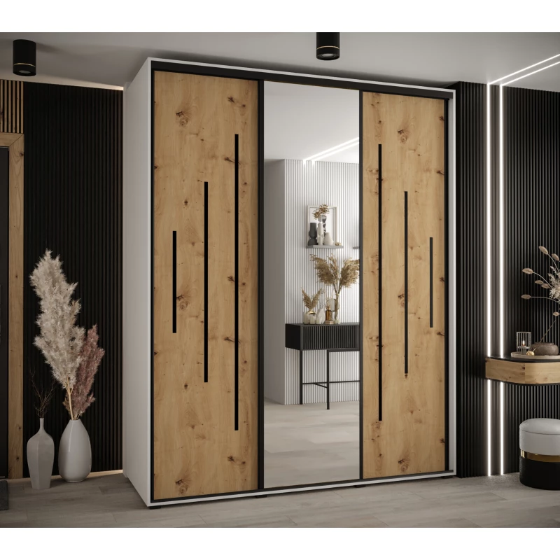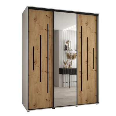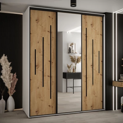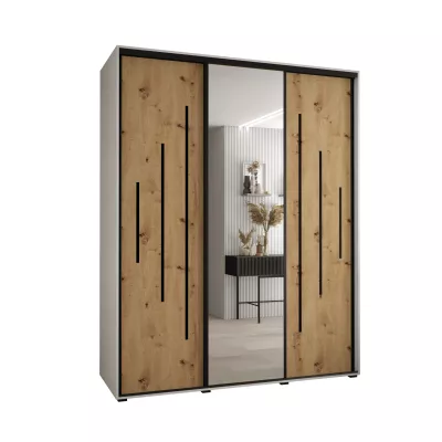 Šatní skříň YVONA 13 - 200/60 cm, bílá / dub artisan / černá