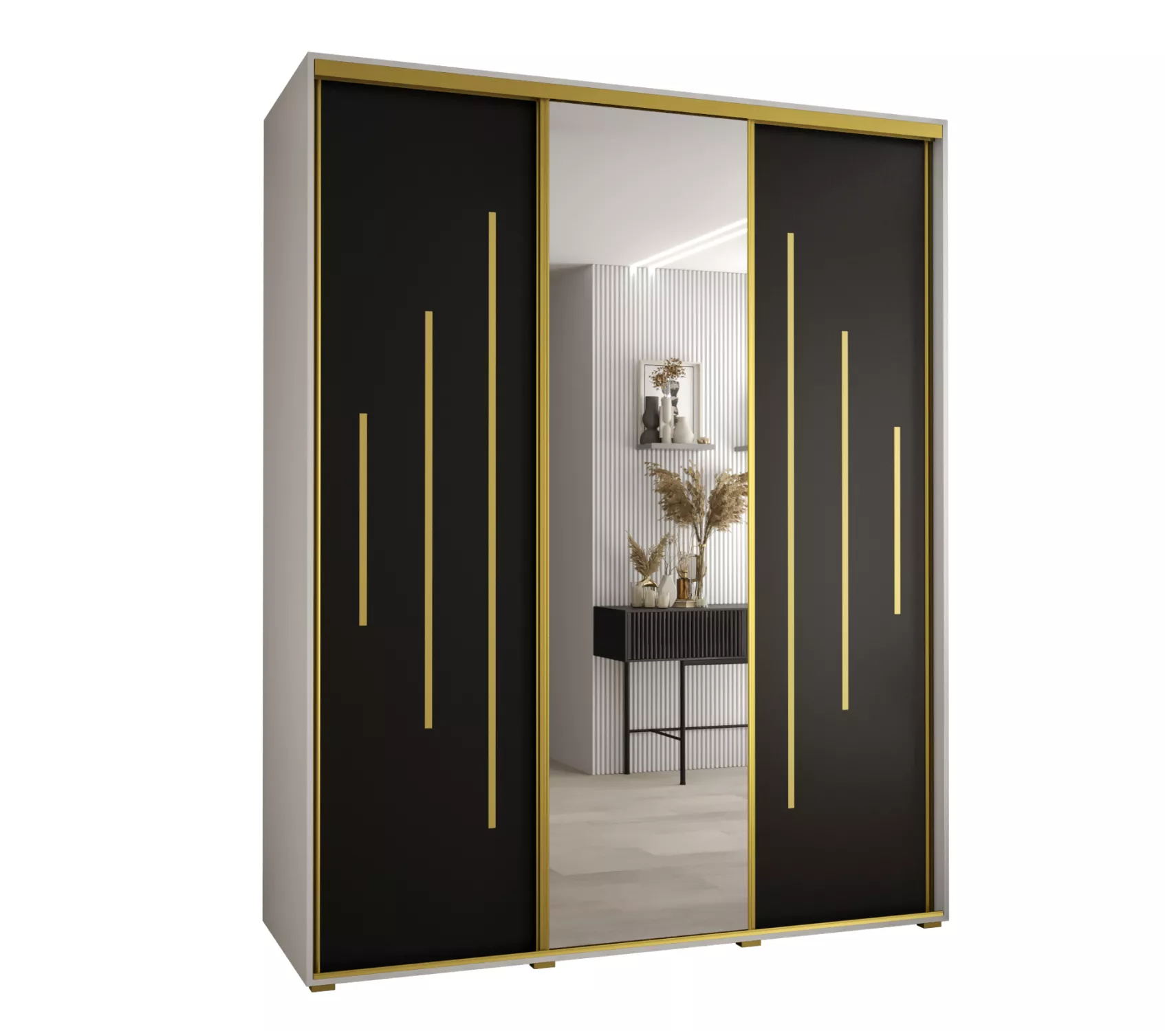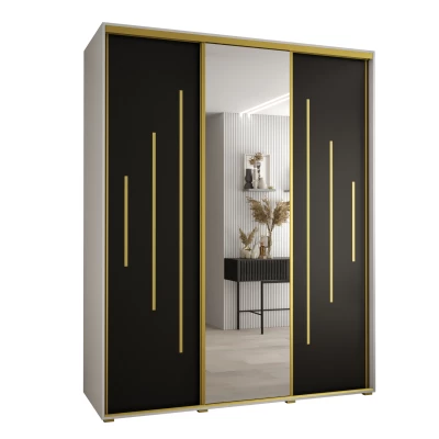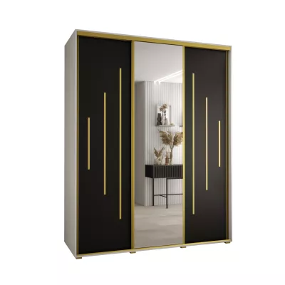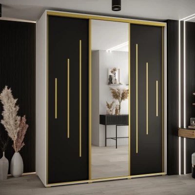 Šatní skříň YVONA 13 - 200/60 cm, bílá / černá / zlatá