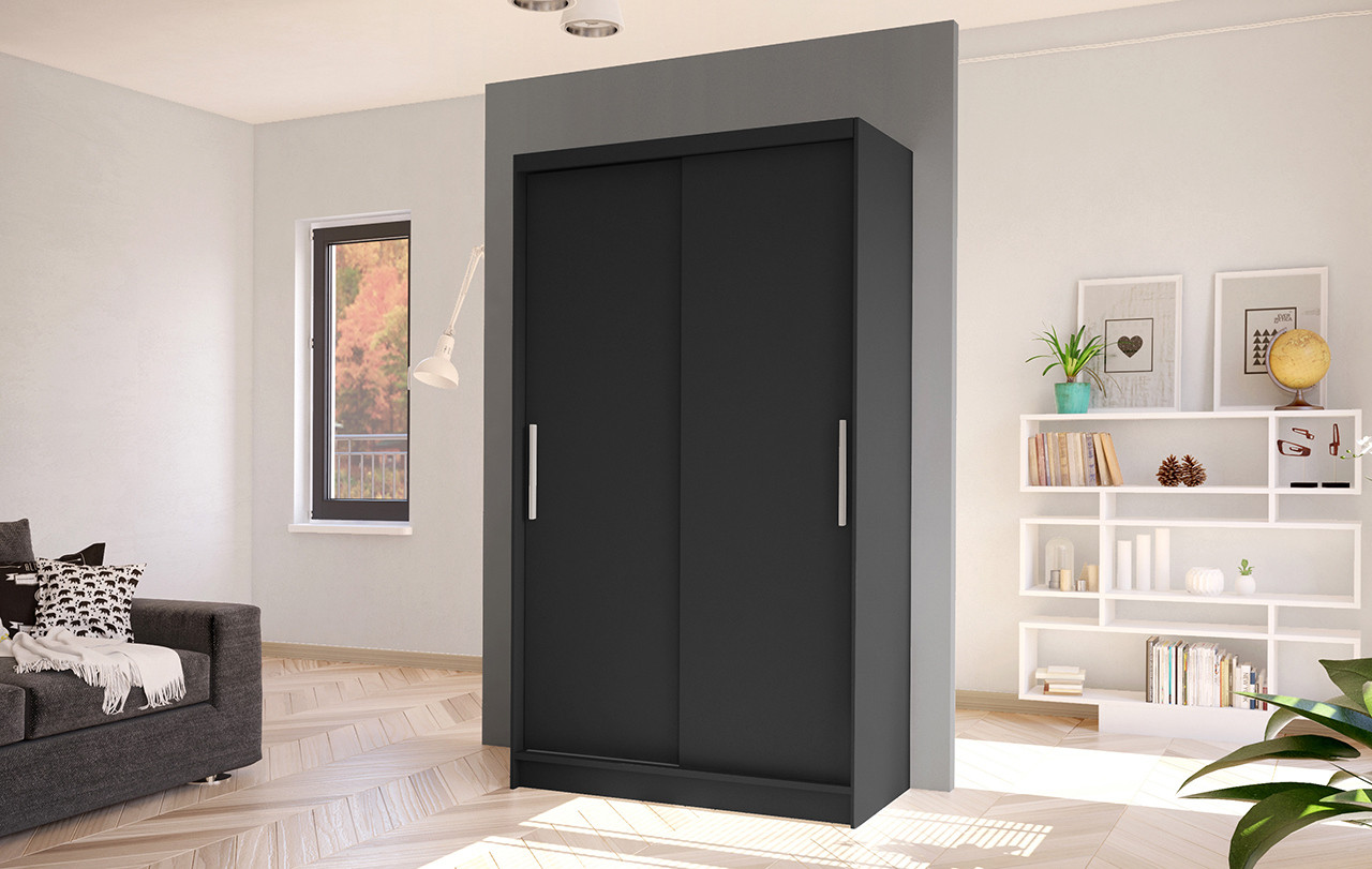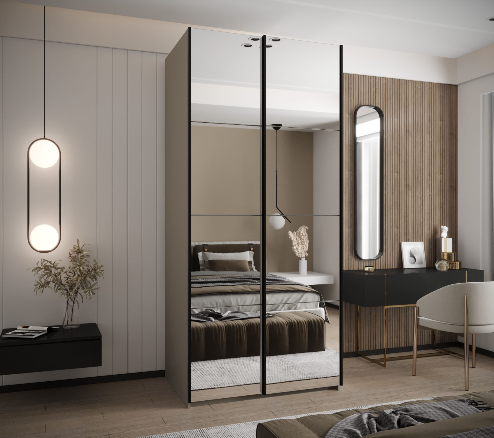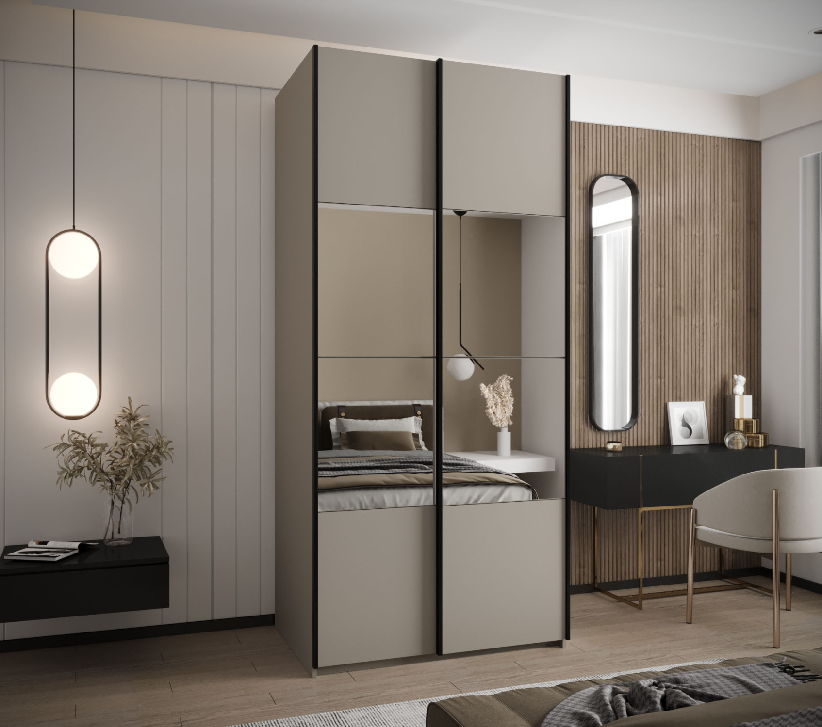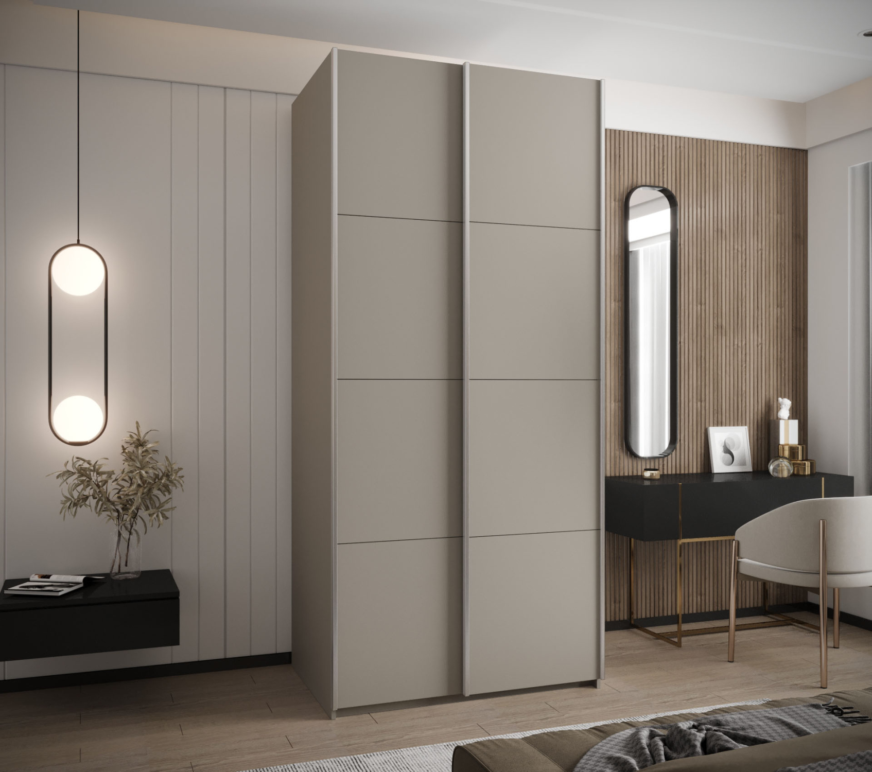 Šatní skříň INDIRA 12 je vyrobena v moderním designu. Skříň je vybavena posuvnými dveřmi, které usnadňují manipulaci a šetří prostor v interiéru.