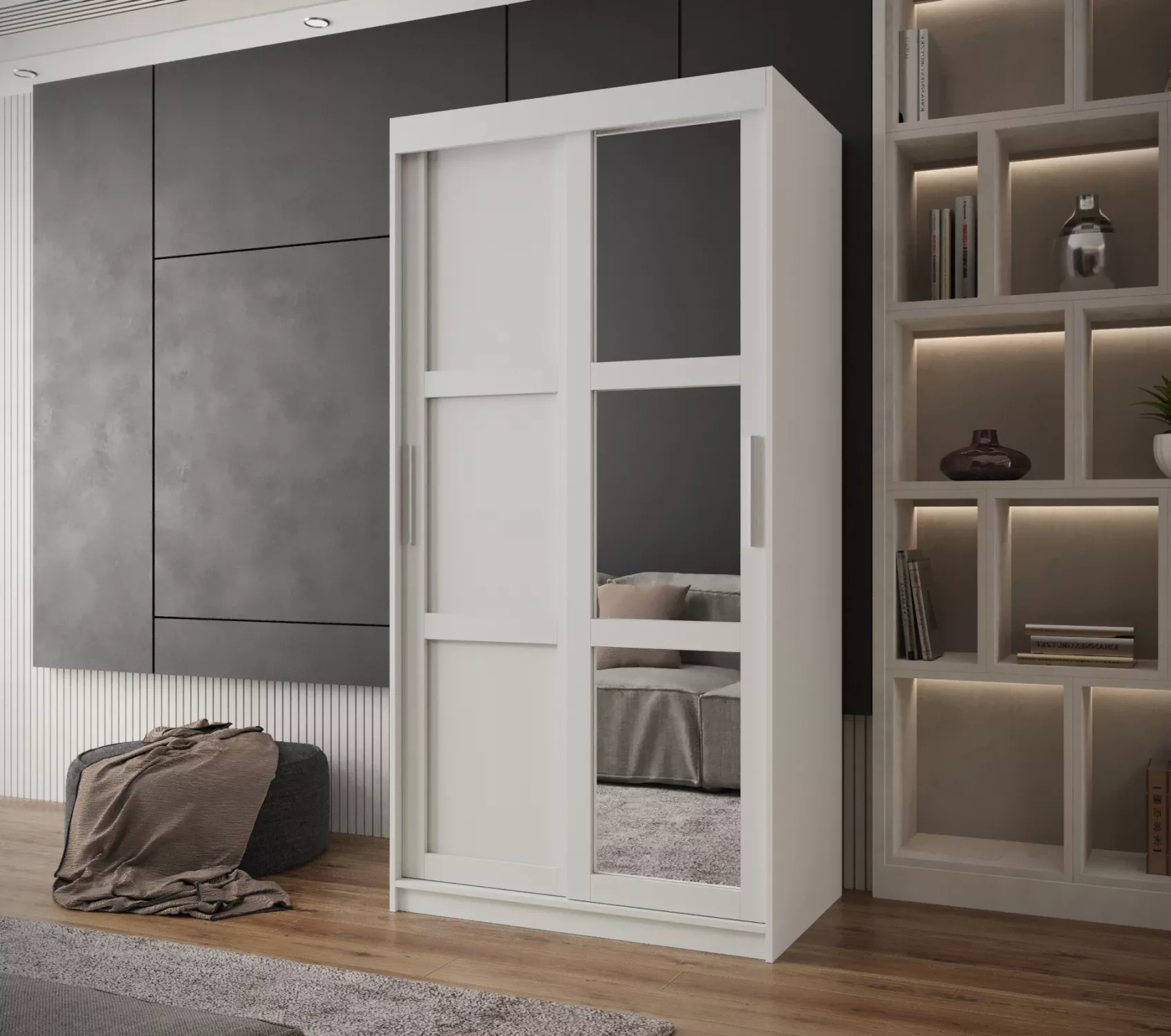 Šatní skříň KORRA 2 - 100 cm, bílá / stříbrná