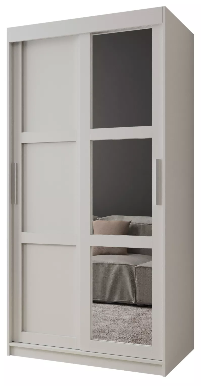 Šatní skříň KORRA 2 se hodí do všech moderních ložnic či šatníků. Skříň je vybavena posuvnými dveřmi, které usnadňují manipulaci a šetří prostor v interiéru.