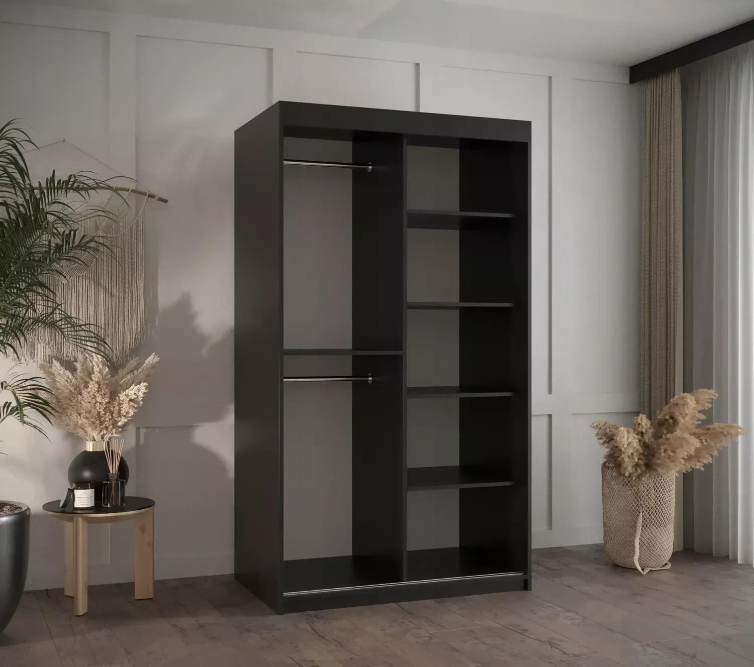 Šatní skříň MATILDA 2 zaujme především stylovými dvířky. Vnitřek skříně je vybaven policovým systémem a 2 šatními tyčemi.