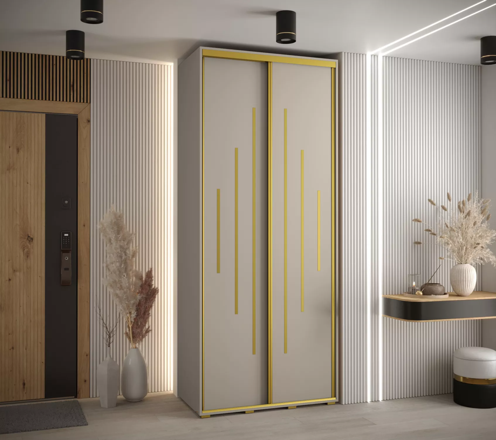 Šatní skříň INDIRA 12 - 110/45 cm, kašmír / zlatá