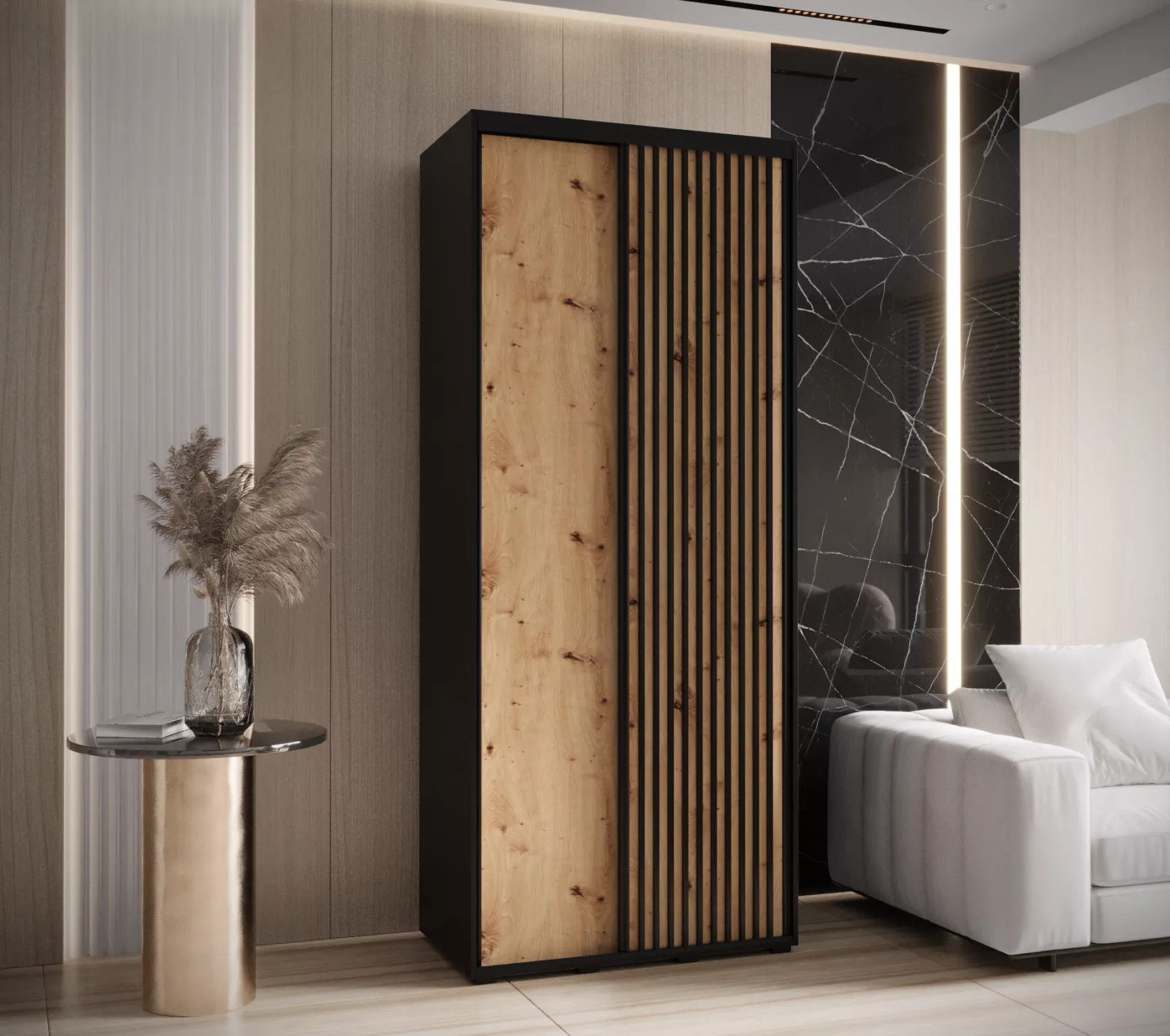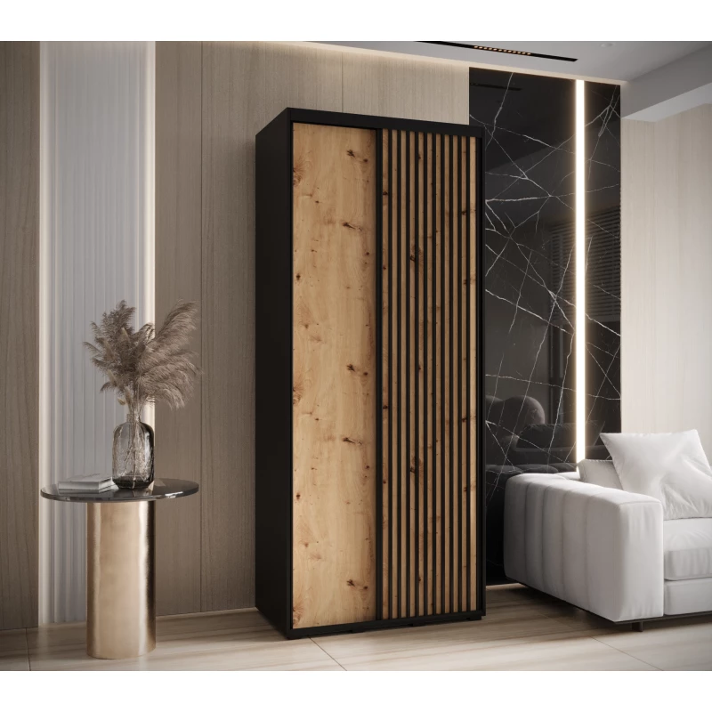 Šatní skříň BAYLIN 1 - 110/45 cm, černá / dub artisan / černá