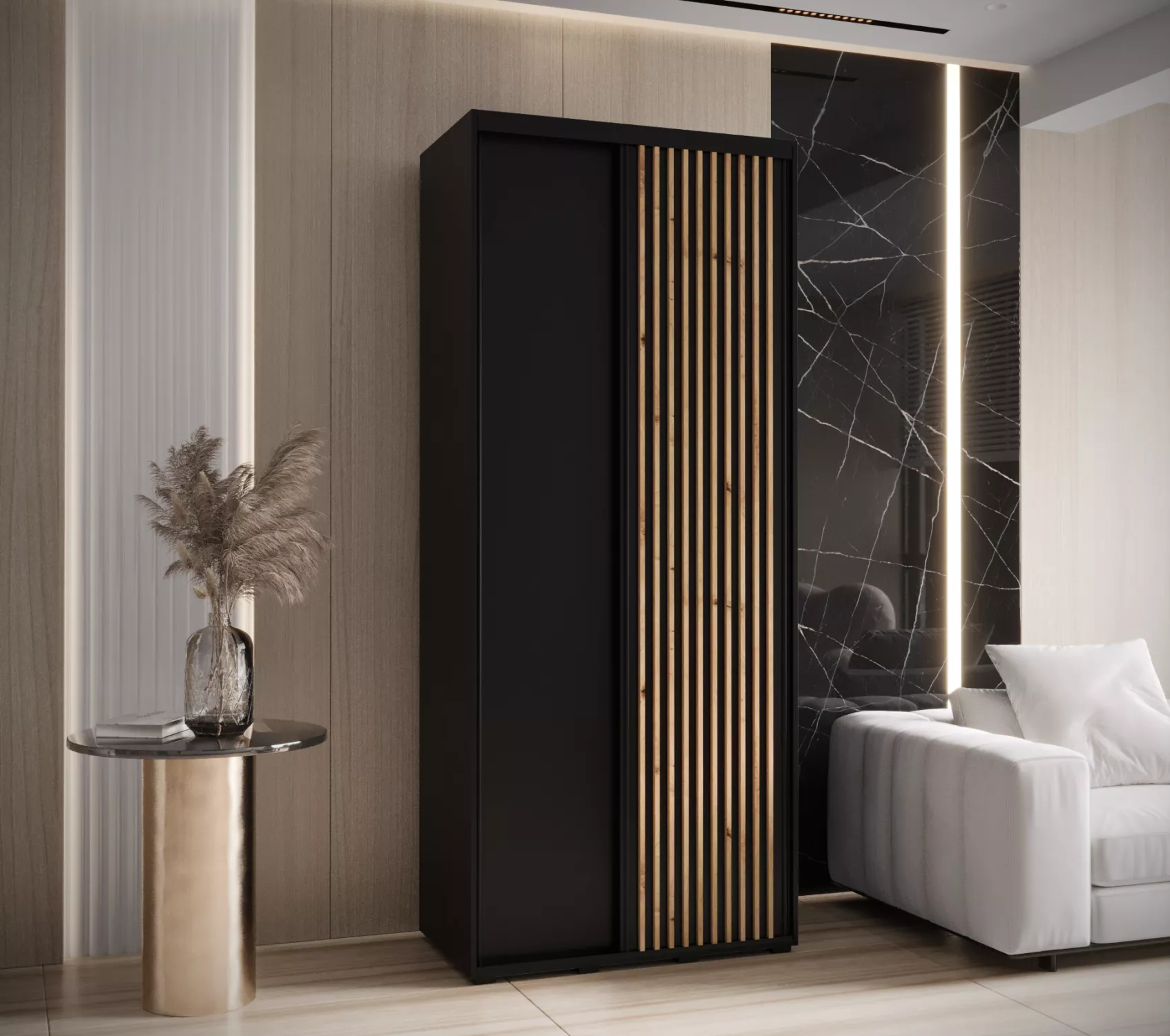 Šatní skříň BAYLIN 1 - 110/45 cm, černá / černá / dub artisan