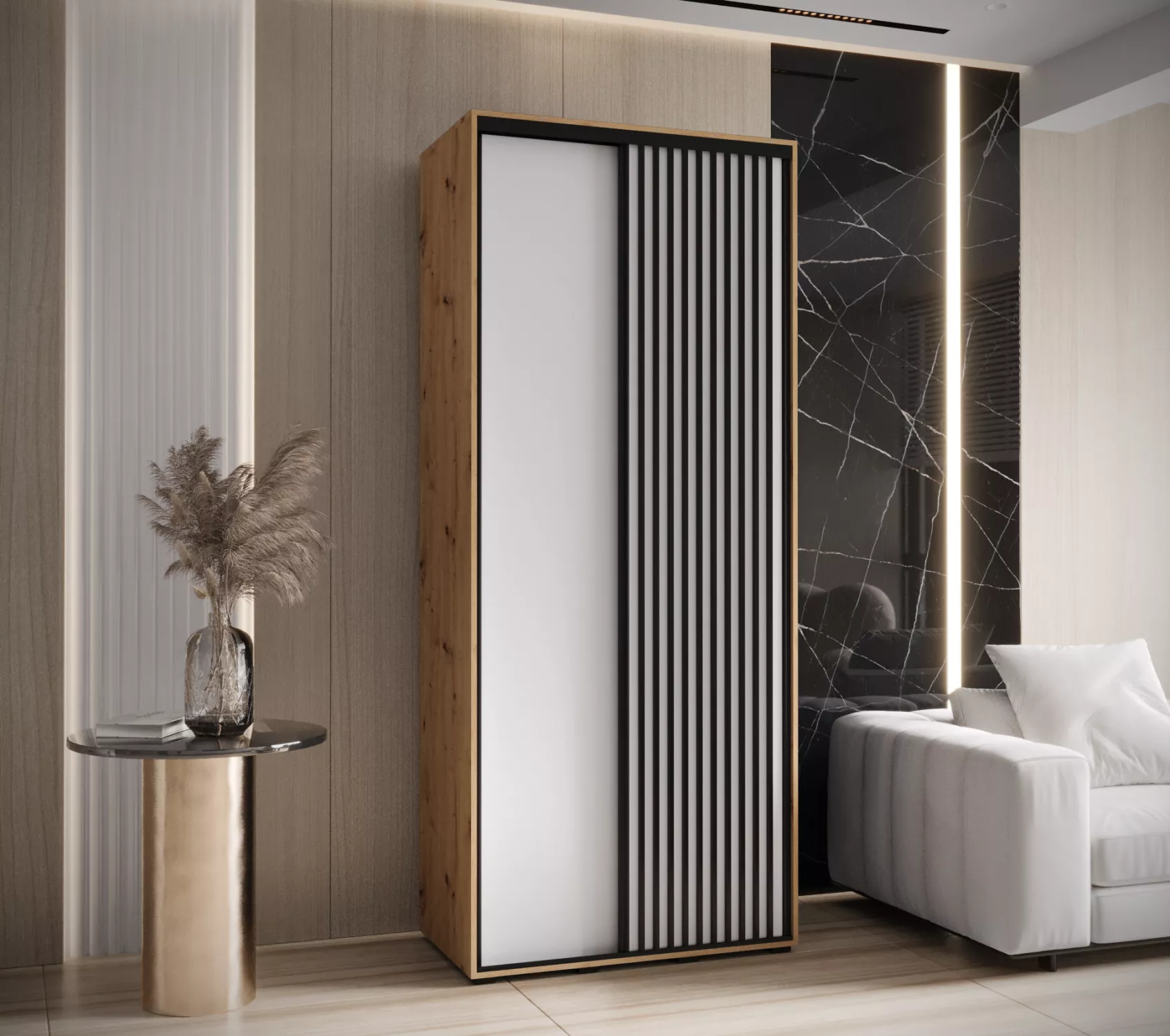 Šatní skříň FIDELIA 1 - 110/45 cm, dub artisan / bílá / černá