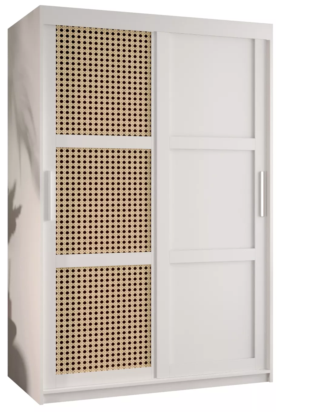 Šatní skříň HALIMA 3 zaujme především stylově provedenými dveřmi. Vnitřek skříně je vybaven policovým systémem a 2 šatními tyčemi.