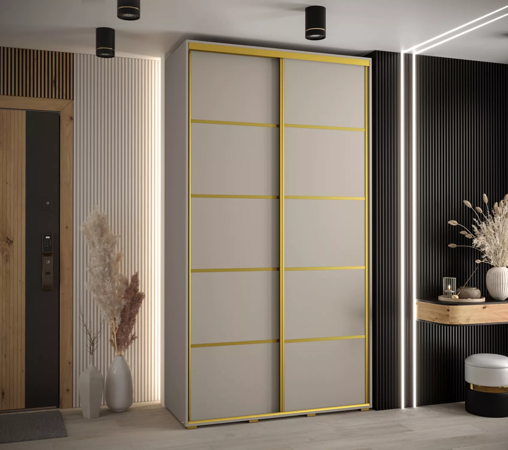 Šatní skříň INDIRA 4 - 130/60 cm, kašmír / zlatá