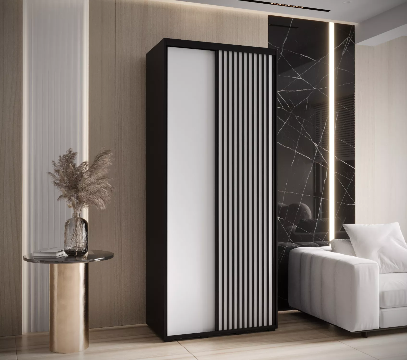 Šatní skříň FIDELIA 1 - 120/45 cm, černá / bílá / černá