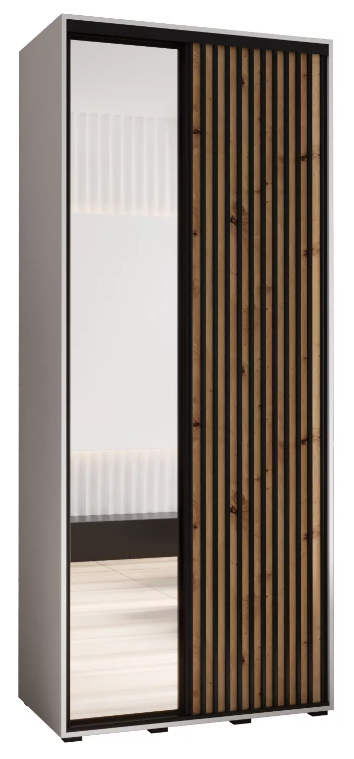 Šatní skříň BAYLIN 2 - 110/45 cm, bílá / dub artisan / černá