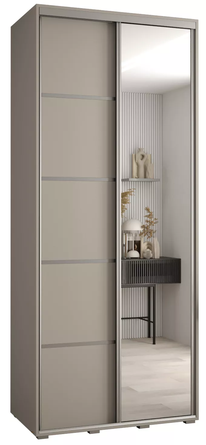 Šatní skříň INDIRA 5 je vyrobena v moderním designu. Skříň je vybavena posuvnými dveřmi, které usnadňují manipulaci a šetří prostor v interiéru.