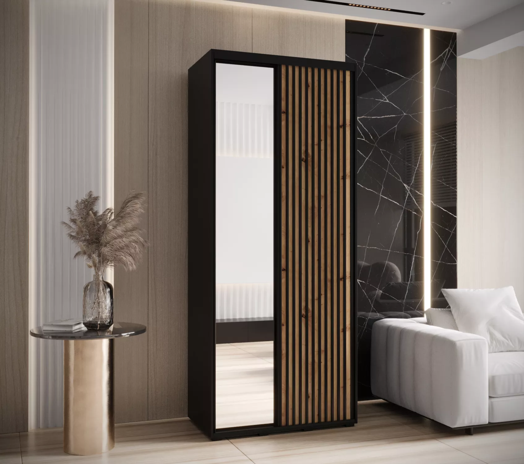 Šatní skříň BAYLIN 2 - 110/60 cm, černá / dub artisan / černá