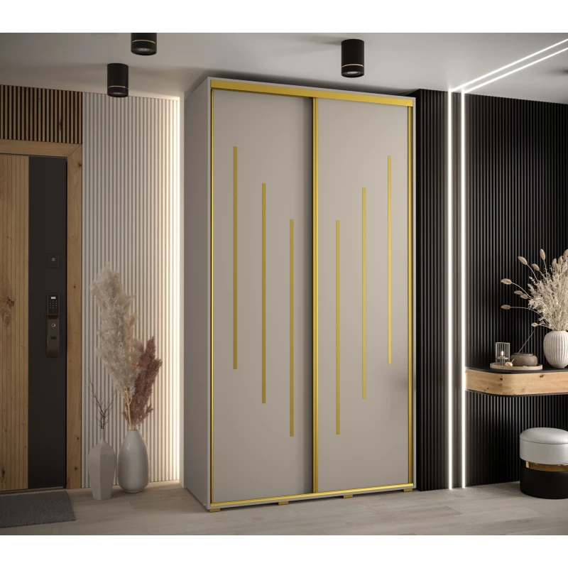 Šatní skříň INDIRA 8 - 140/60 cm, kašmír / zlatá