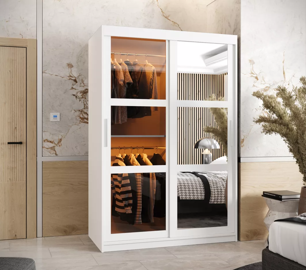 Šatní skříň KATIE 1 - 120 cm, bílá / stříbrná