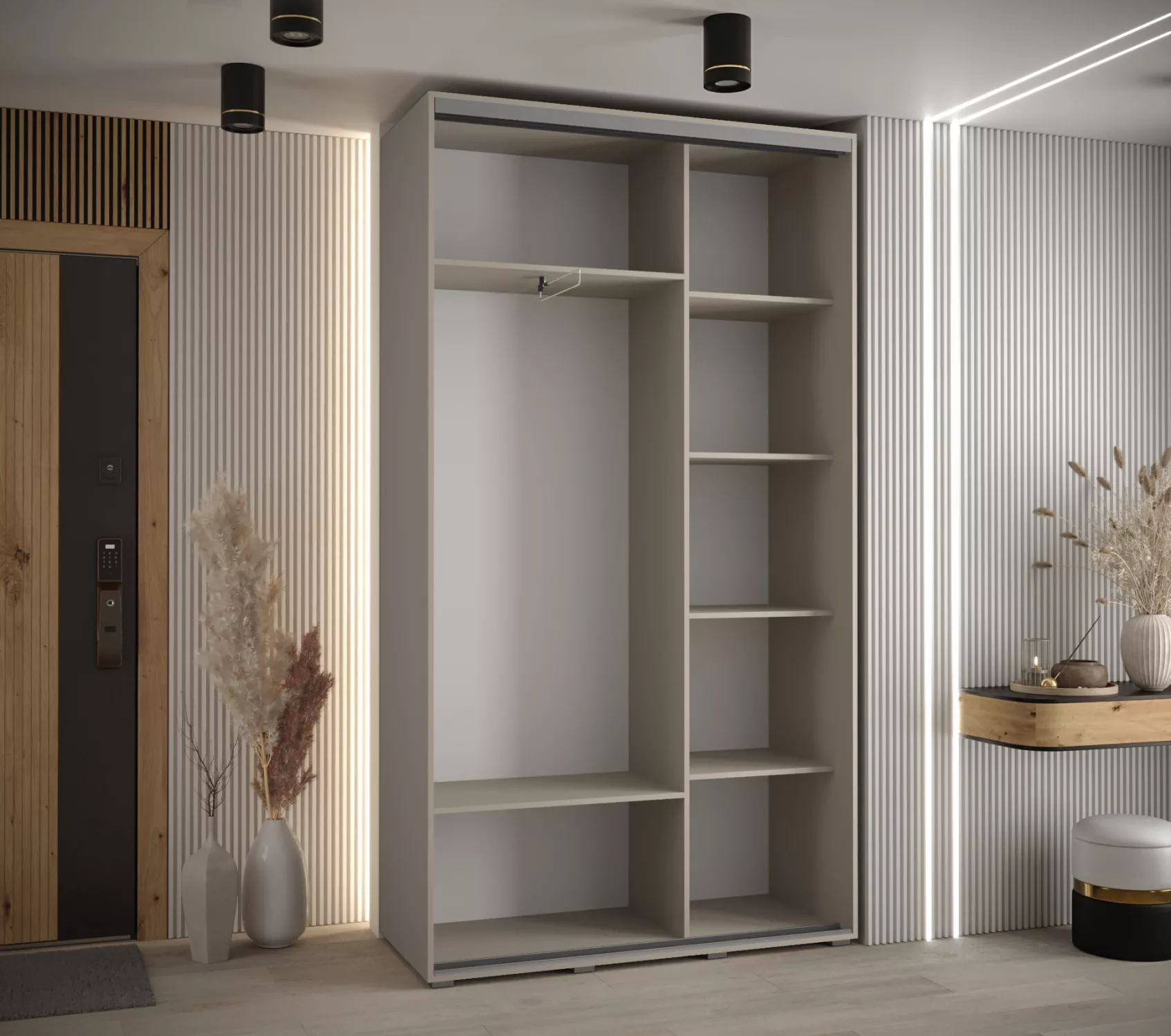 - výsuvná šatní tyč: ano (2x, kov)