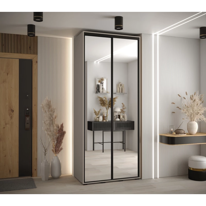 Šatní skříň INDIRA 2 je vyrobena v moderním designu. Skříň je vybavena posuvnými dveřmi, které usnadňují manipulaci a šetří prostor v interiéru.