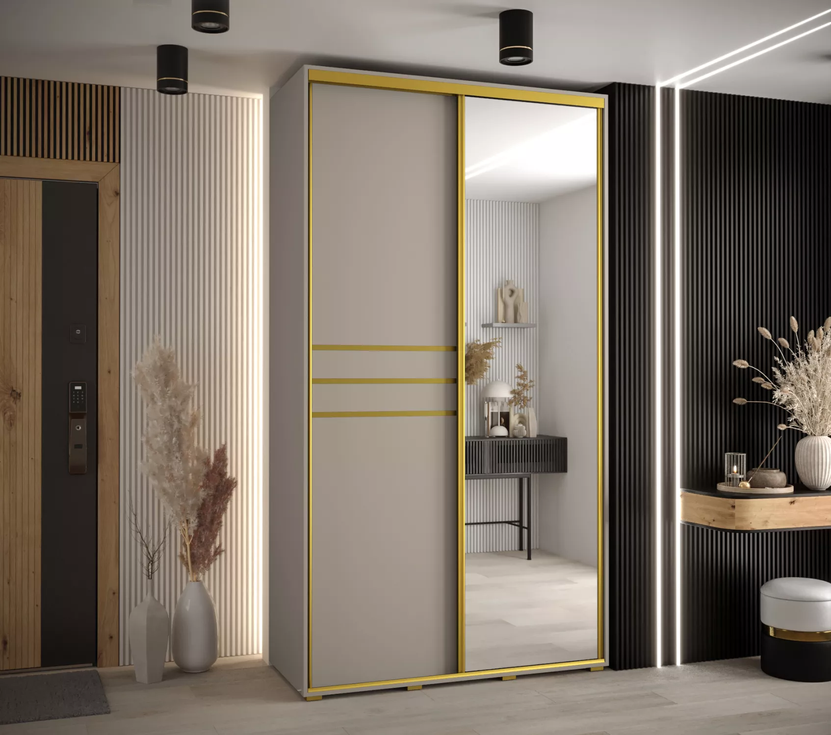 Šatní skříň INDIRA 11 - 140/45 cm, kašmír / zlatá