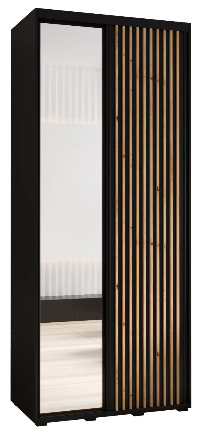 Šatní skříň FIDELIA 2 - 110/60 cm, černá / černá / dub artisan