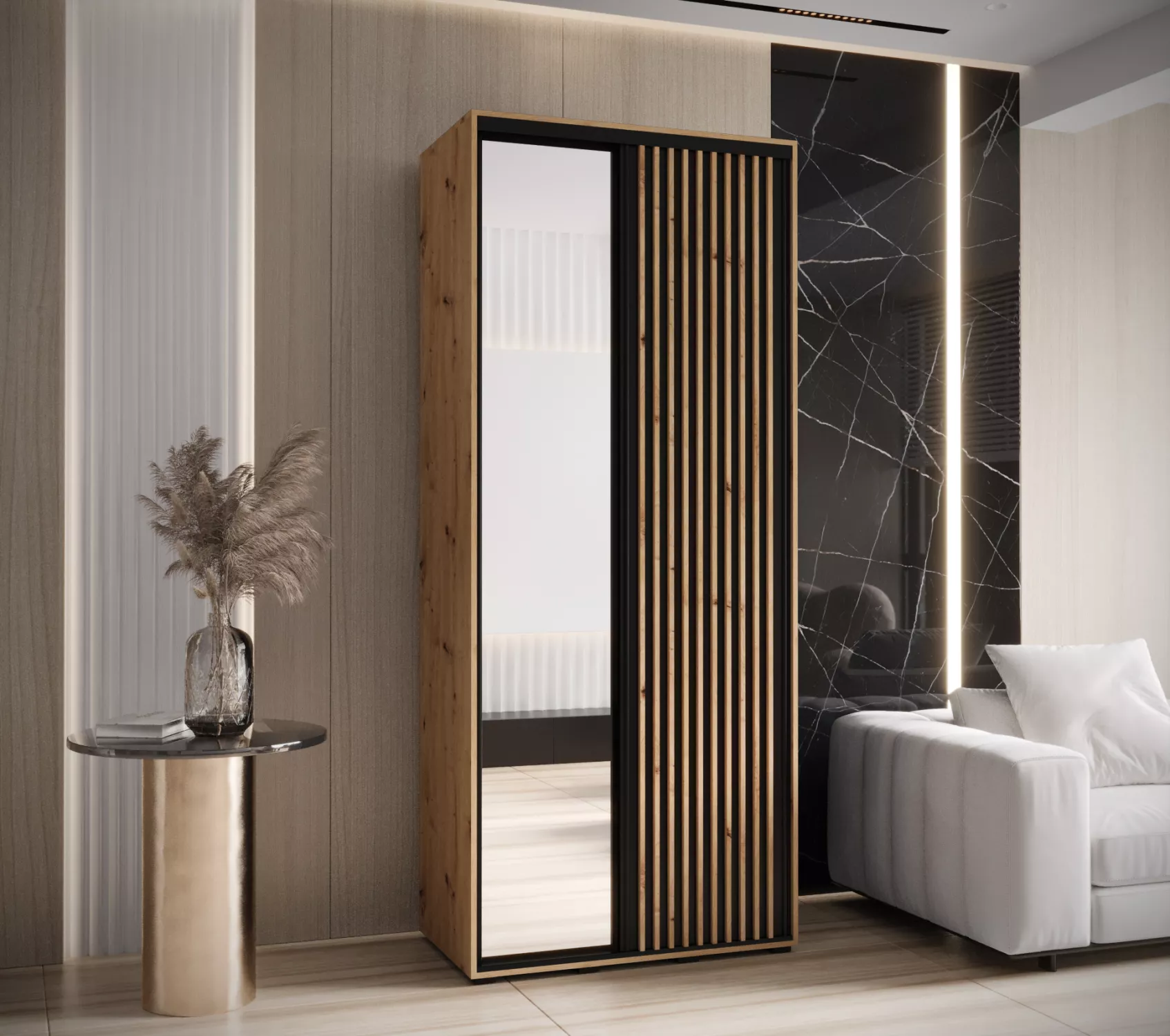 Šatní skříň FIDELIA 2 - 110/60 cm, dub artisan / černá / dub artisan