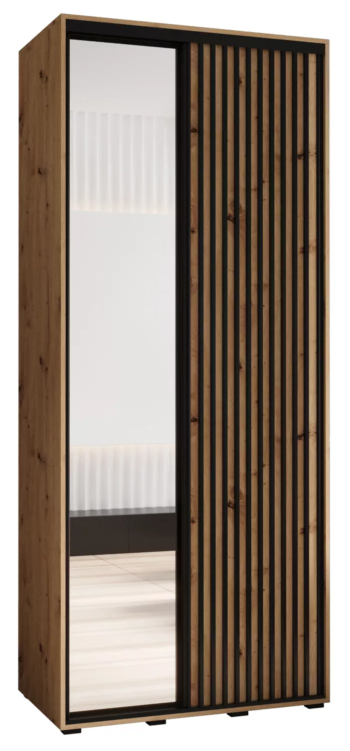Šatní skříň FIDELIA 2 - 110/60 cm, dub artisan / dub artisan / černá