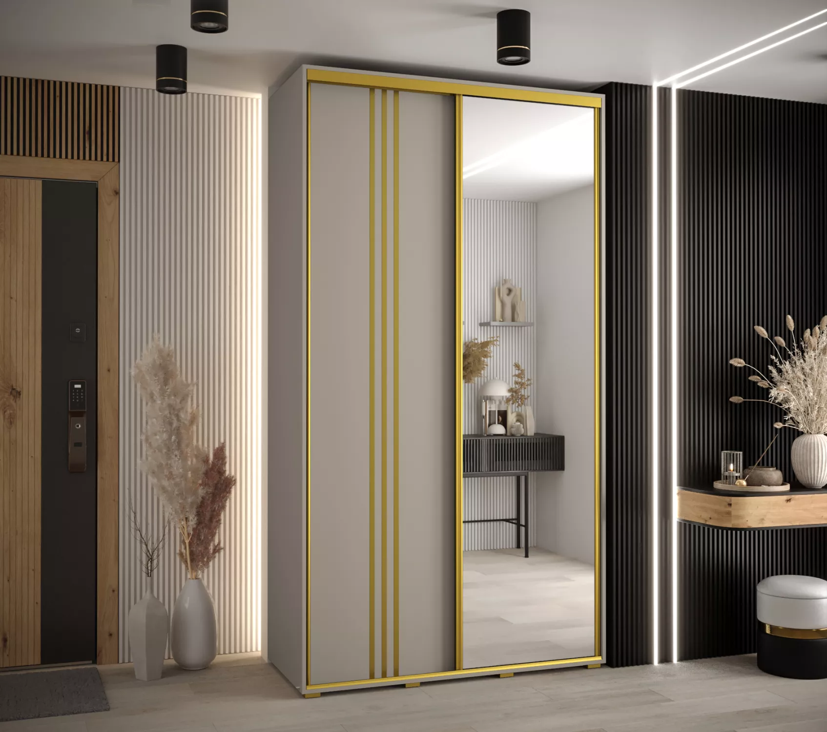 Šatní skříň INDIRA 7 - 130/60 cm, kašmír / zlatá