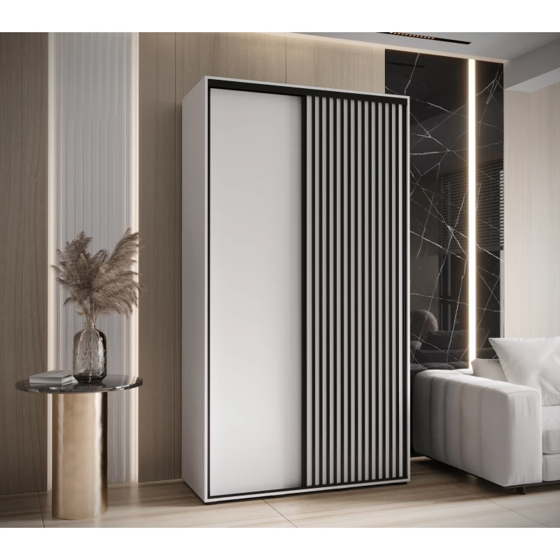 Šatní skříň BAYLIN 1 - 140/60 cm, bílá / bílá / černá