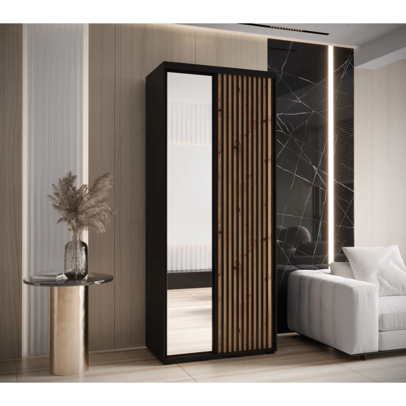Šatní skříň BAYLIN 2 - 120/60 cm, černá / dub artisan / černá