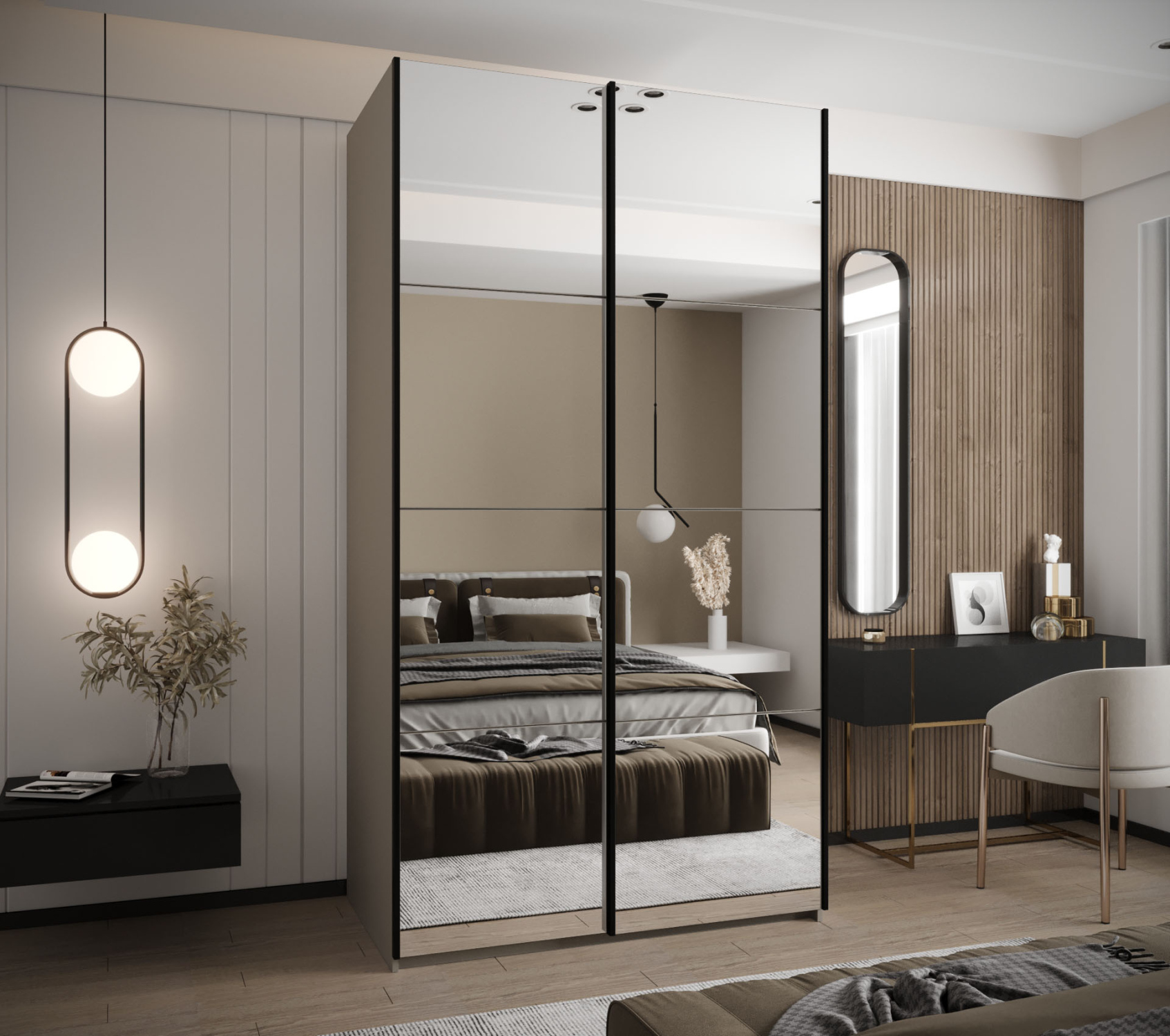 Šatní skříň INDIRA 7 je vyrobena v moderním designu. Skříň je vybavena posuvnými dveřmi, které usnadňují manipulaci a šetří prostor v interiéru.