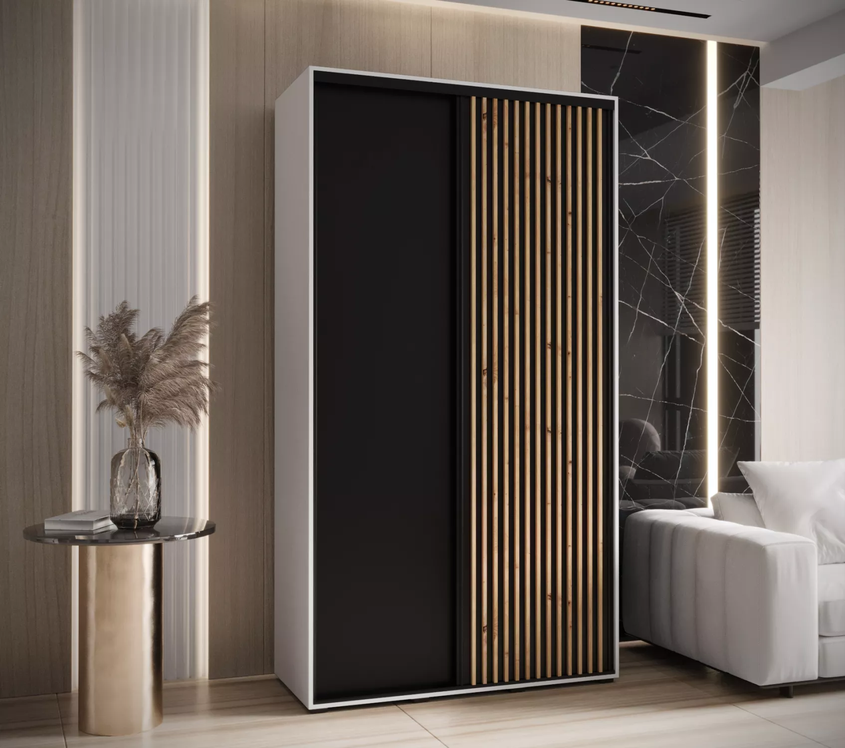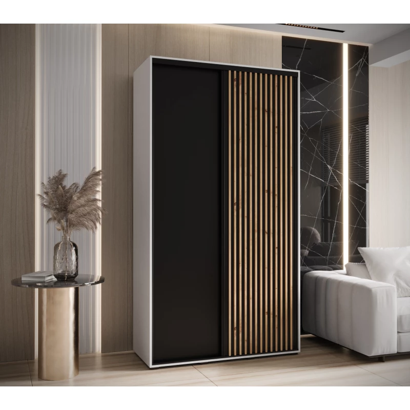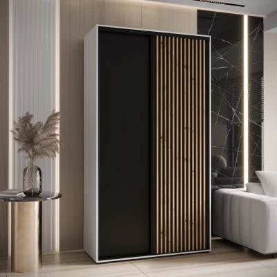 Šatní skříň FIDELIA 1 - 140/60 cm, bílá / černá / dub artisan