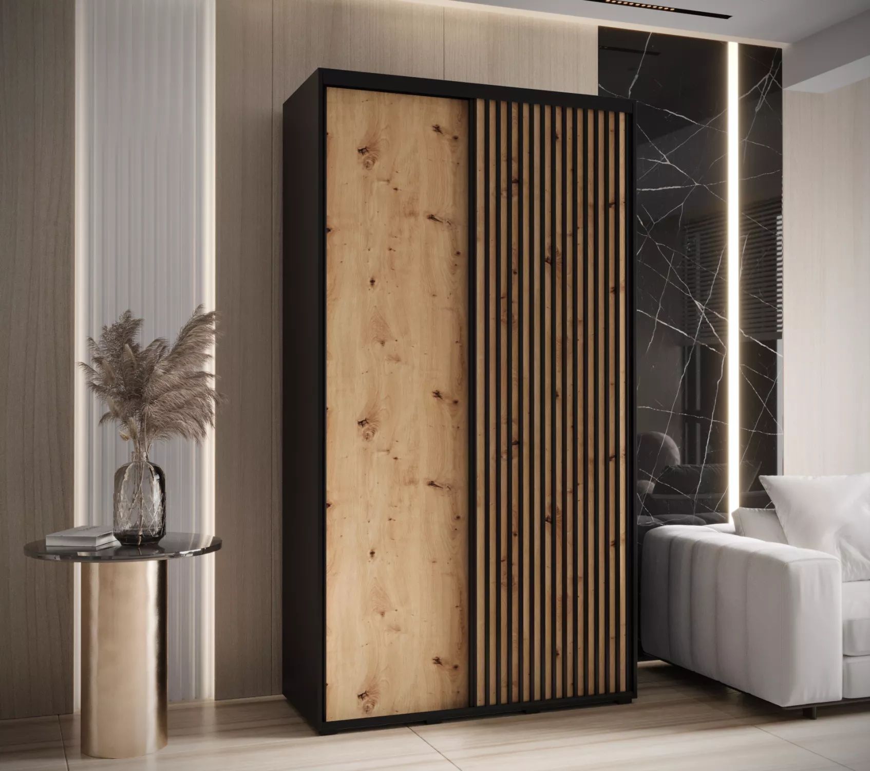 Šatní skříň FIDELIA 1 - 140/60 cm, černá / dub artisan / černá